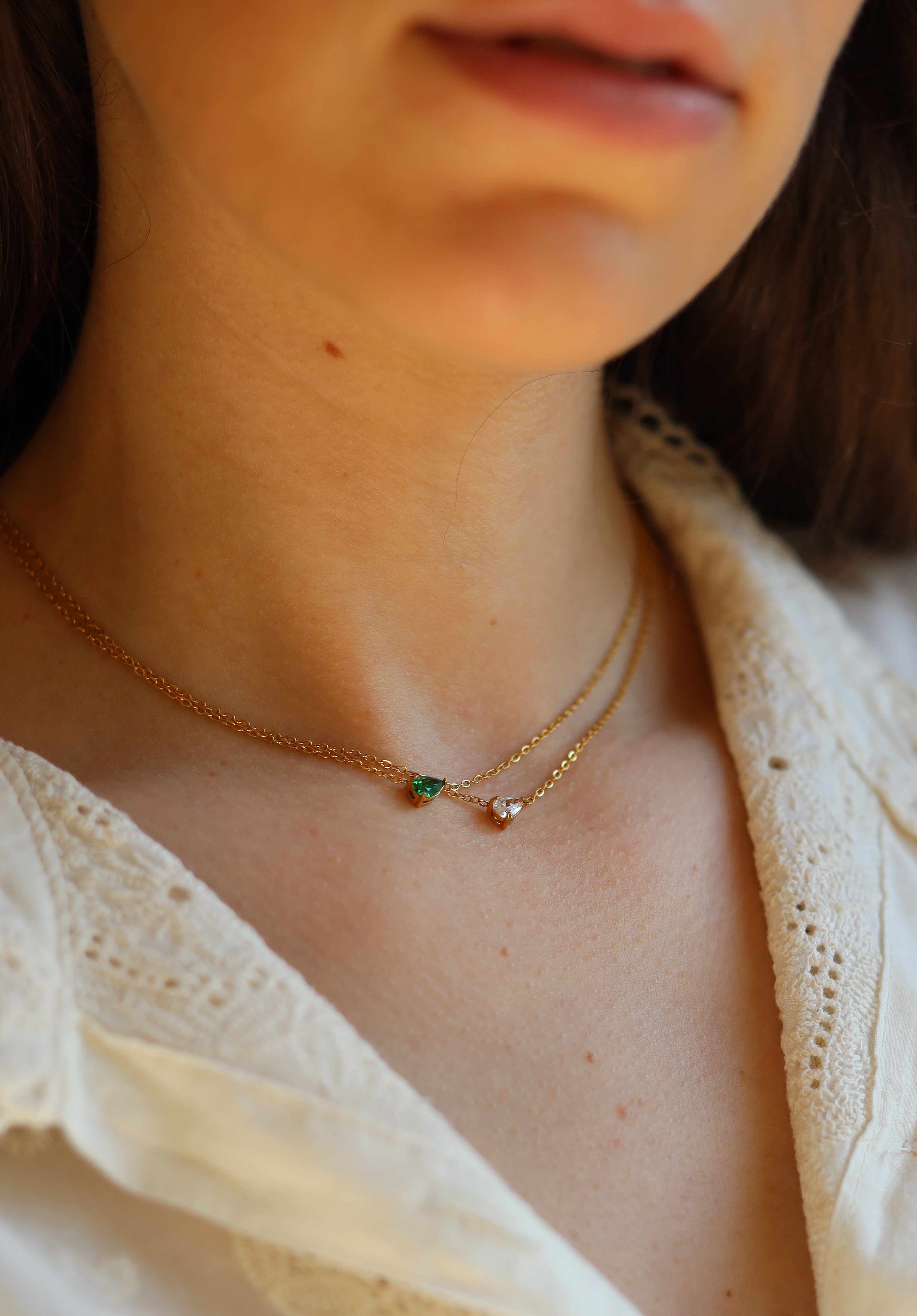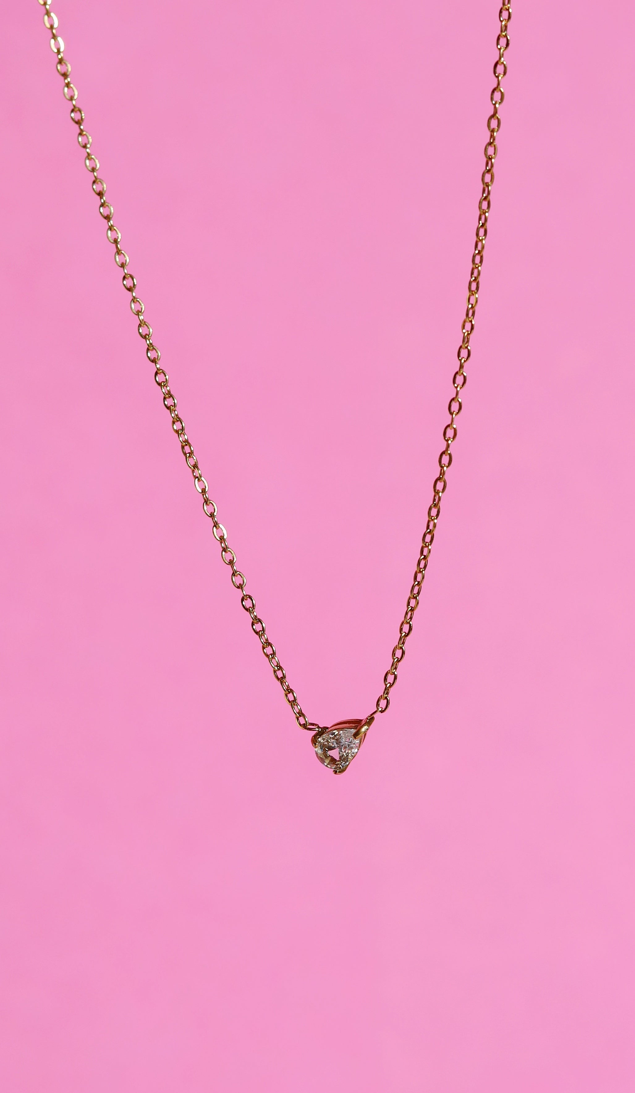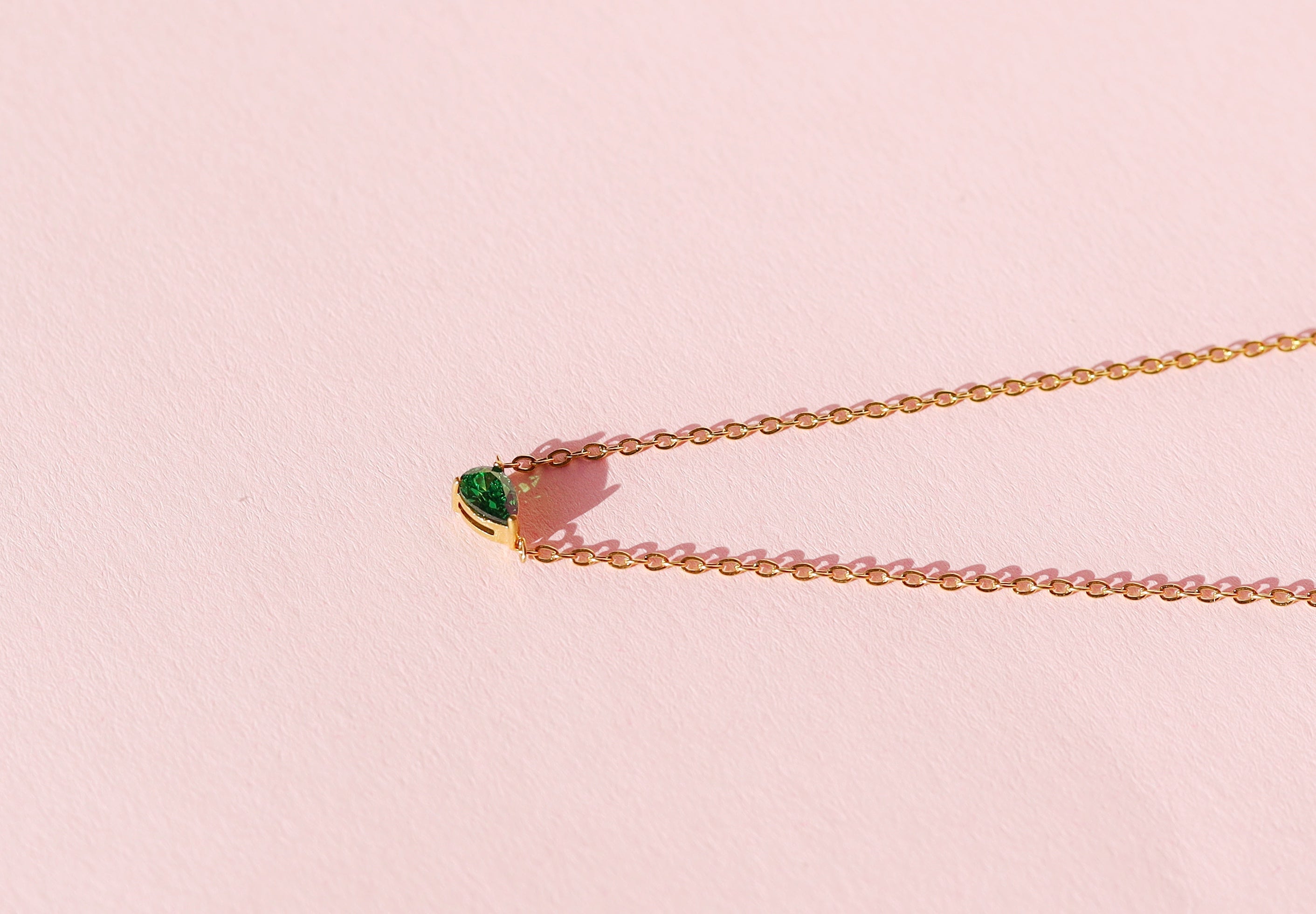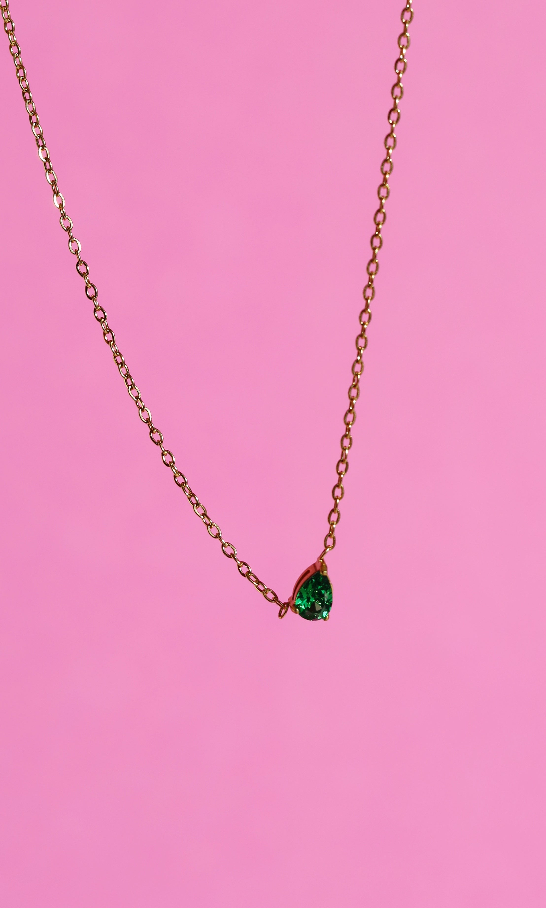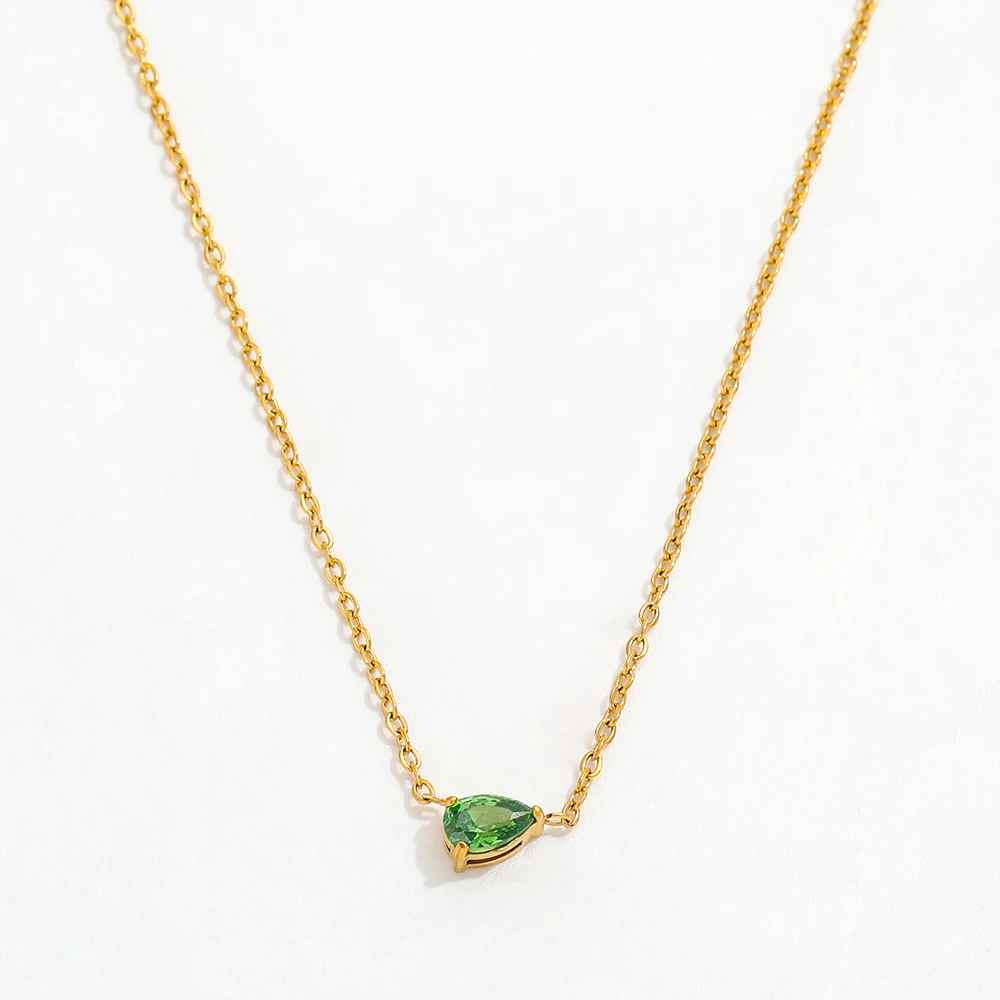 The Teardrop Shape Crystal Pendant is a beautiful minimalist necklace with a teardrop cubic zirconia at its centre coming in green or clear colour. The gemstones sparkle beautifully and are set in front of a Secrets Chamber within the metal of the pendant.