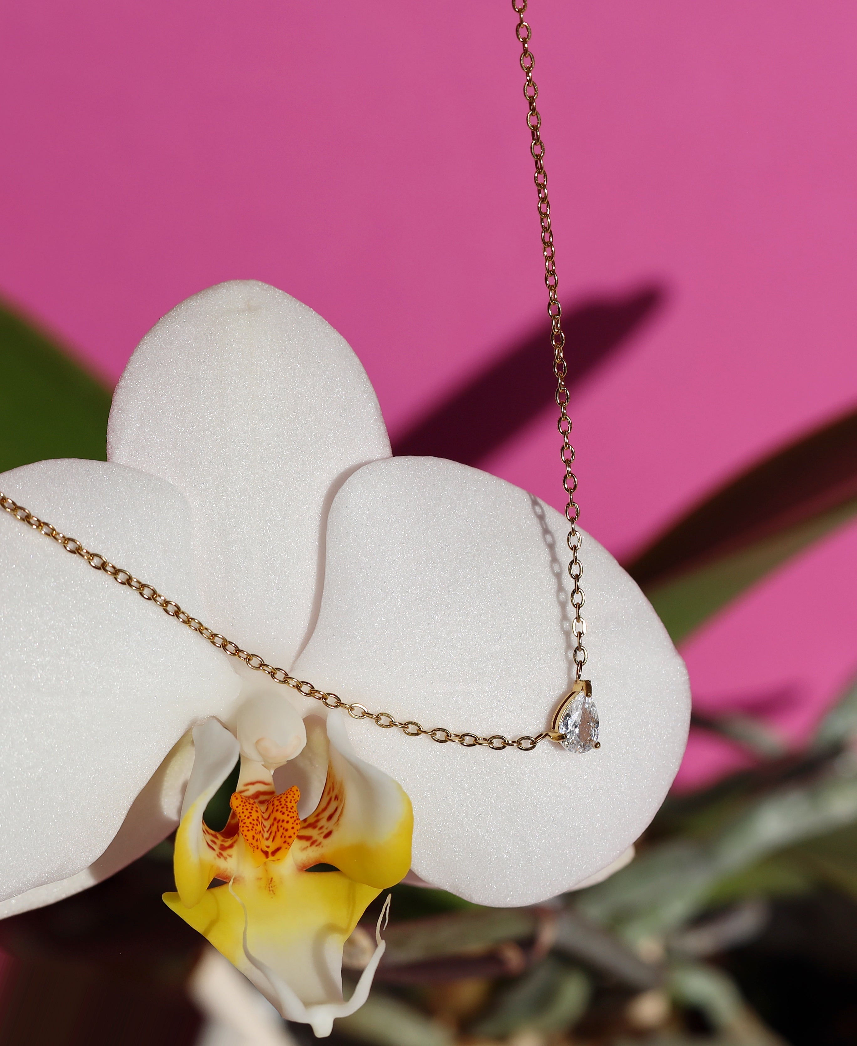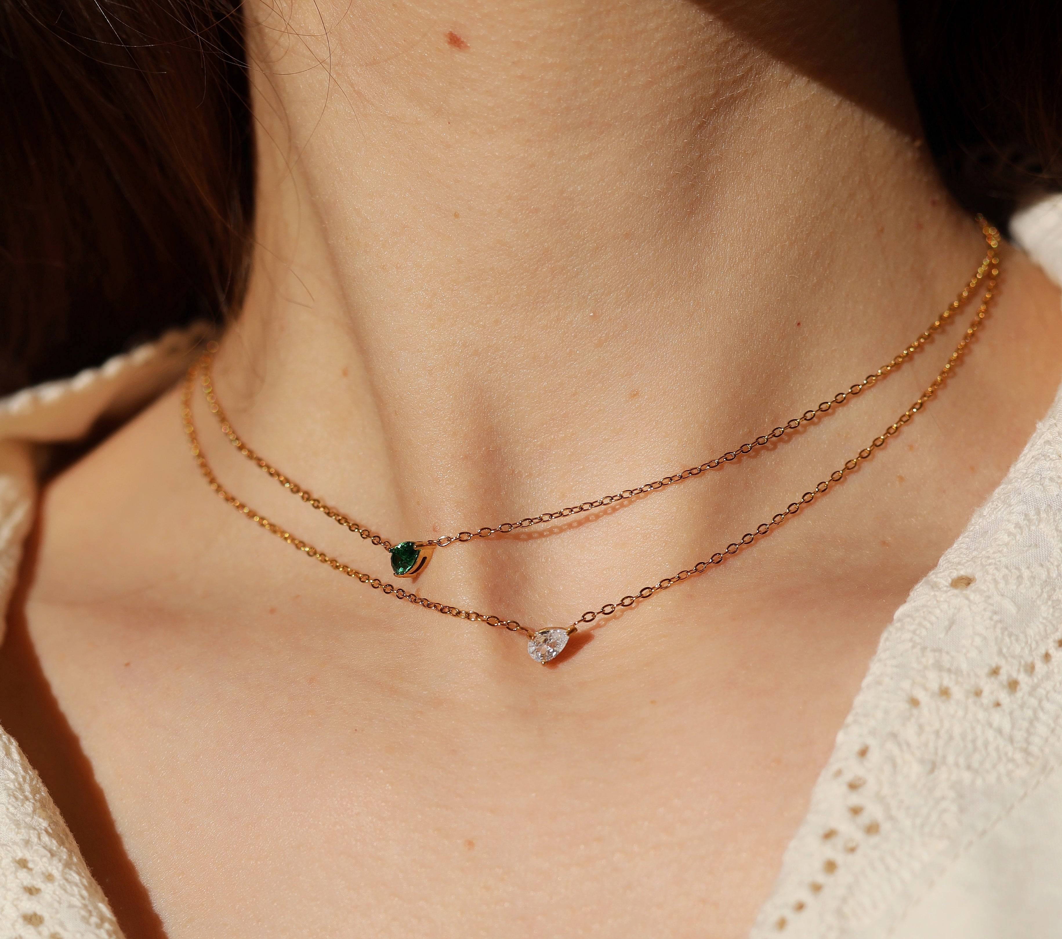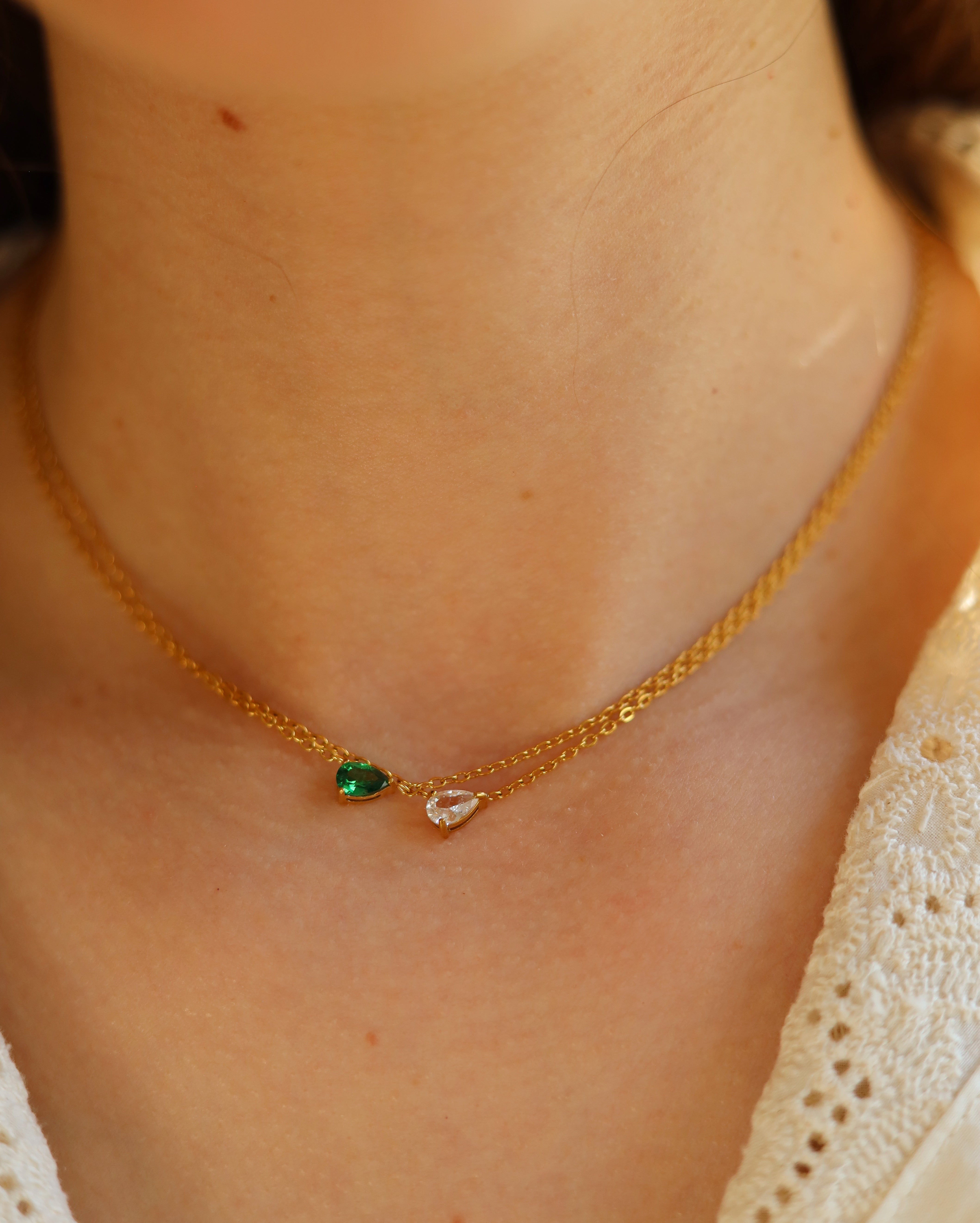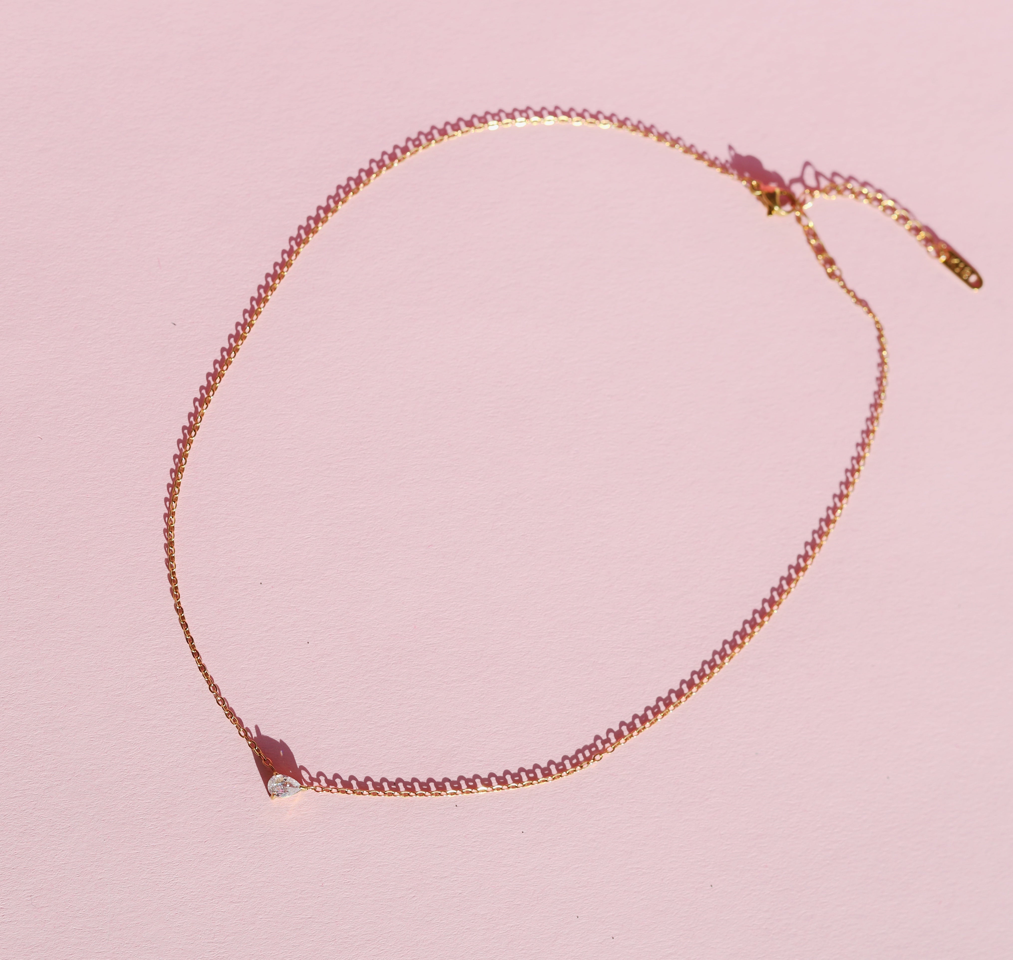 The Teardrop Shape Crystal Pendant is a beautiful minimalist necklace with a teardrop cubic zirconia at its centre coming in green or clear colour. The gemstones sparkle beautifully and are set in front of a Secrets Chamber within the metal of the pendant.