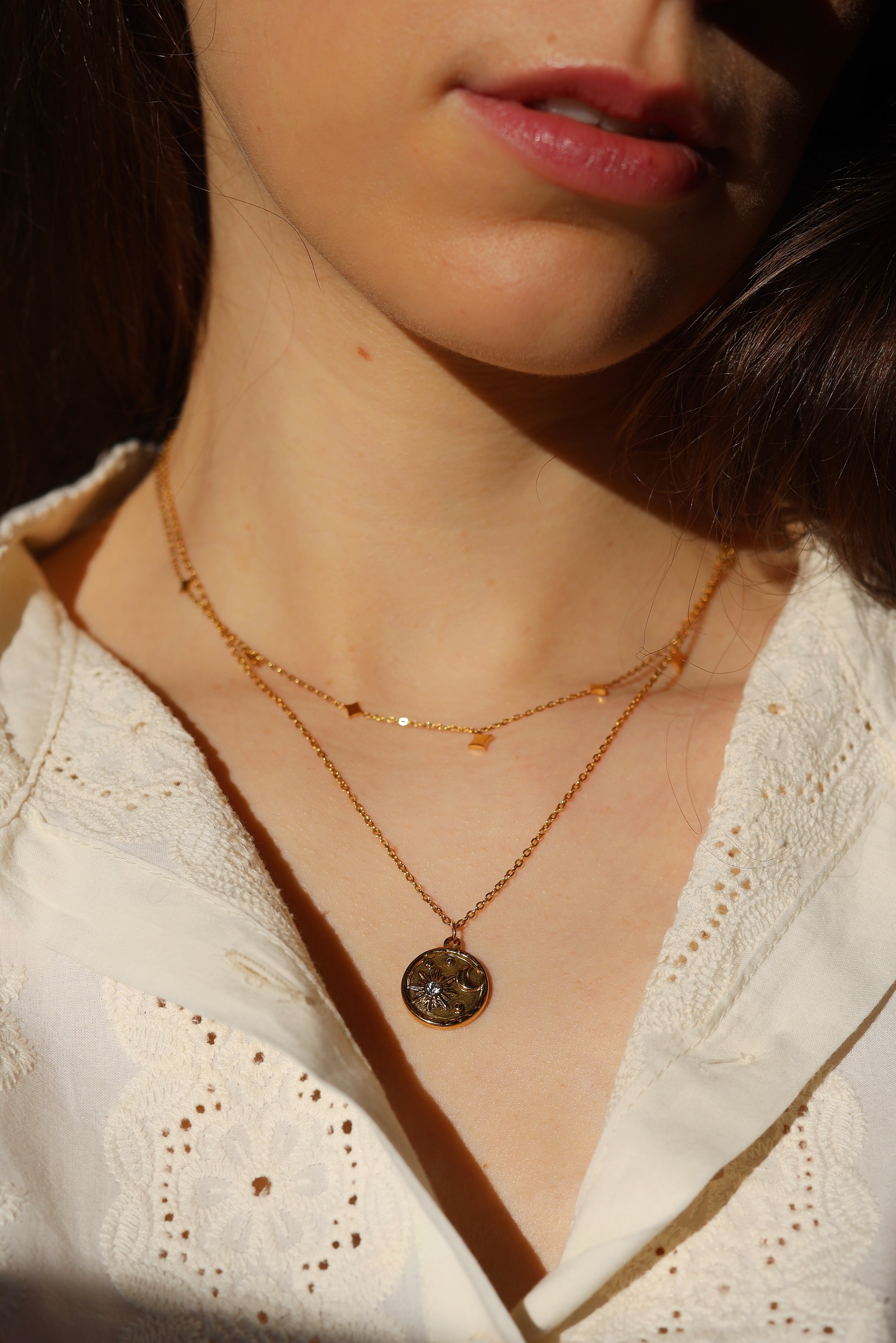 Magdolna - Sun and Moon Pendant Necklace