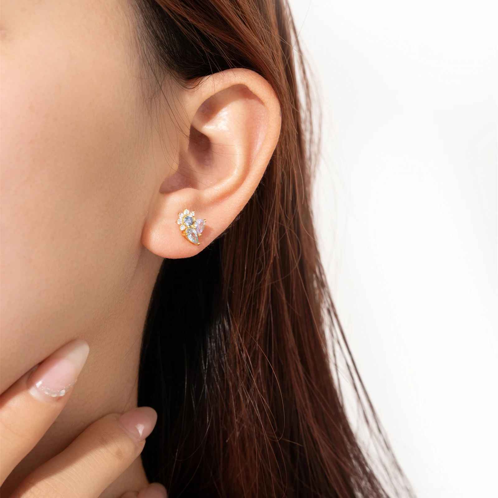 Die wunderschöne Kombination aus Ozeanblau, Champagner und klaren CZ-Steinen schafft einzigartige Cluster-Ohrstecker. Diese lassen sich perfekt mit Ihren Favoriten kombinieren, um Ihre eigene minimalistische Ohrparty zu kreieren. Das sind Ohrringe, die Sie nicht mehr ausziehen möchten!