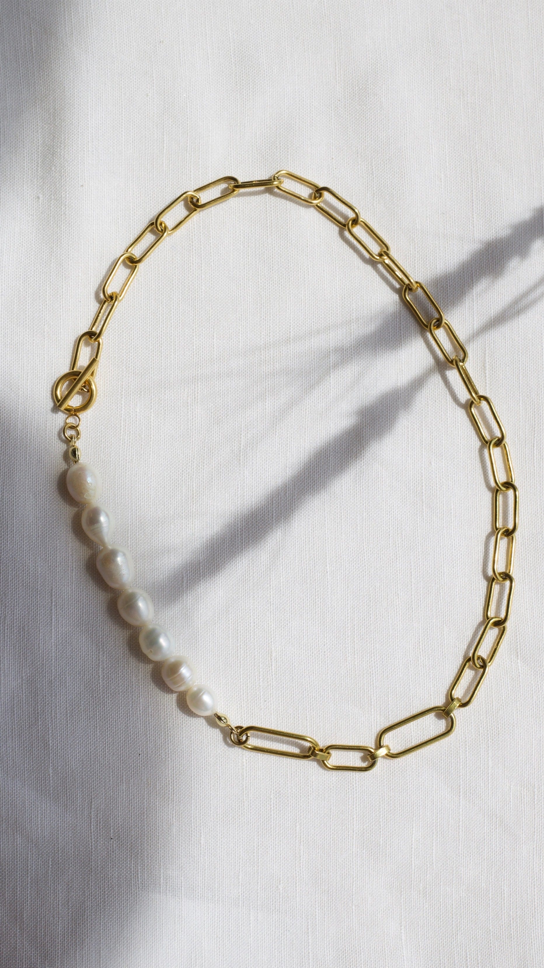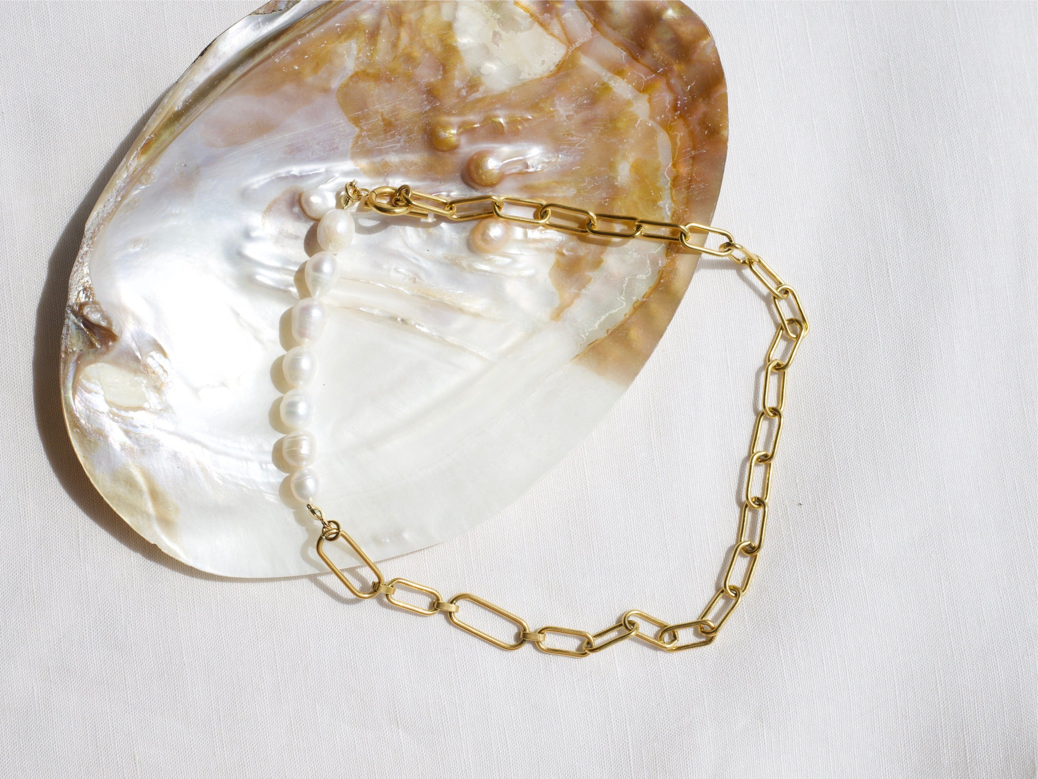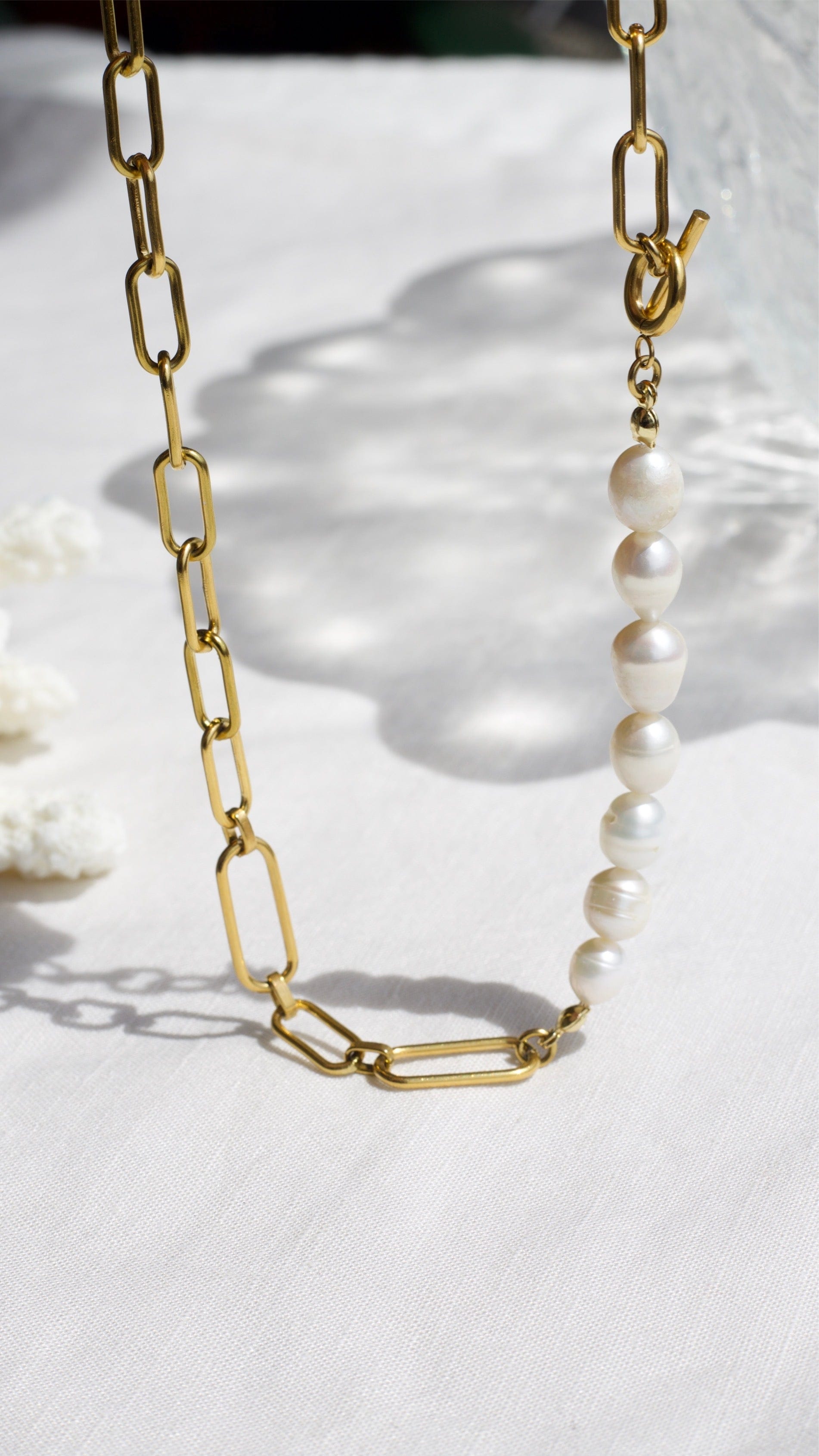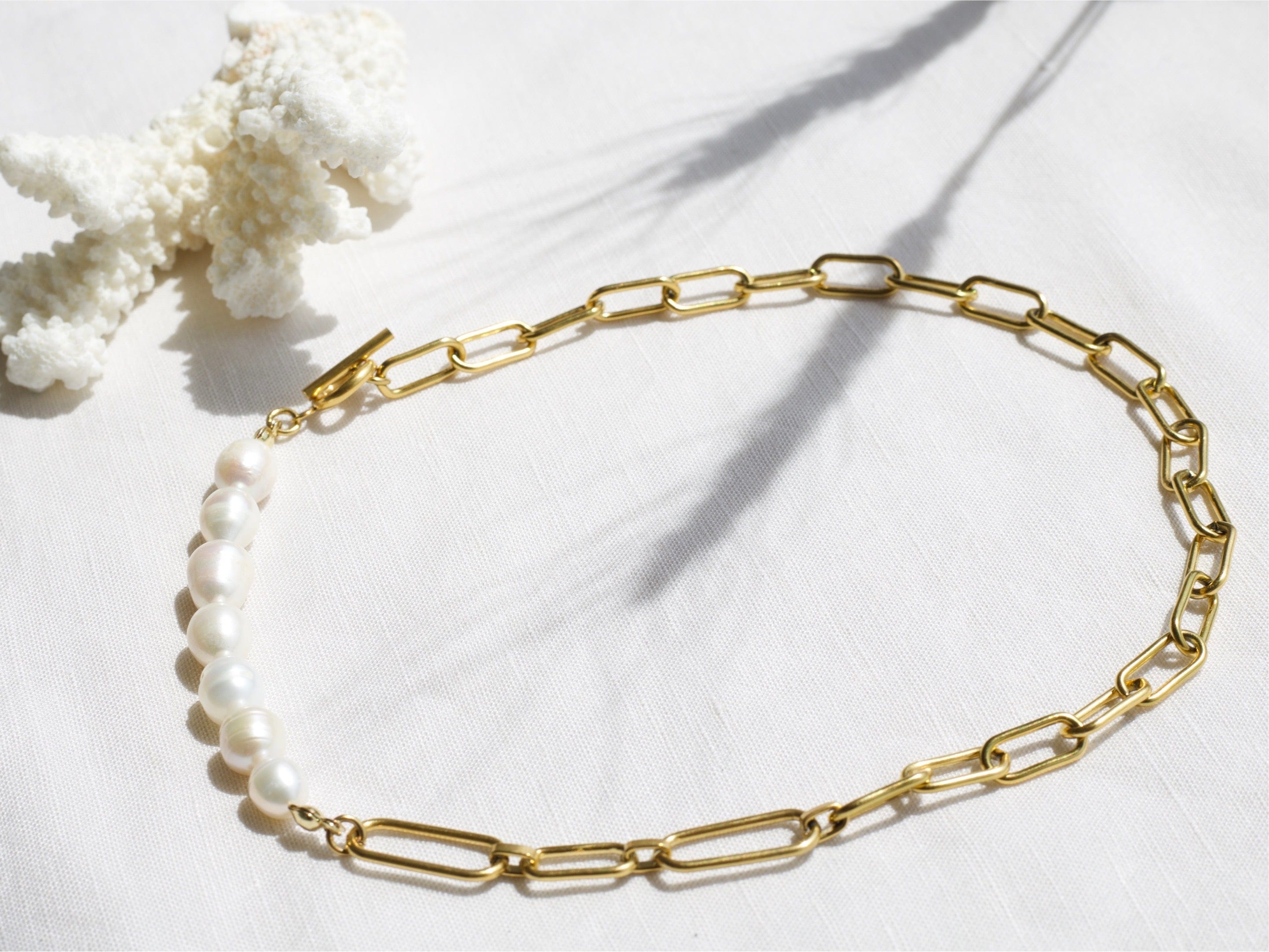 Beaux – Halskette mit halber Perle und halber Gliederkette