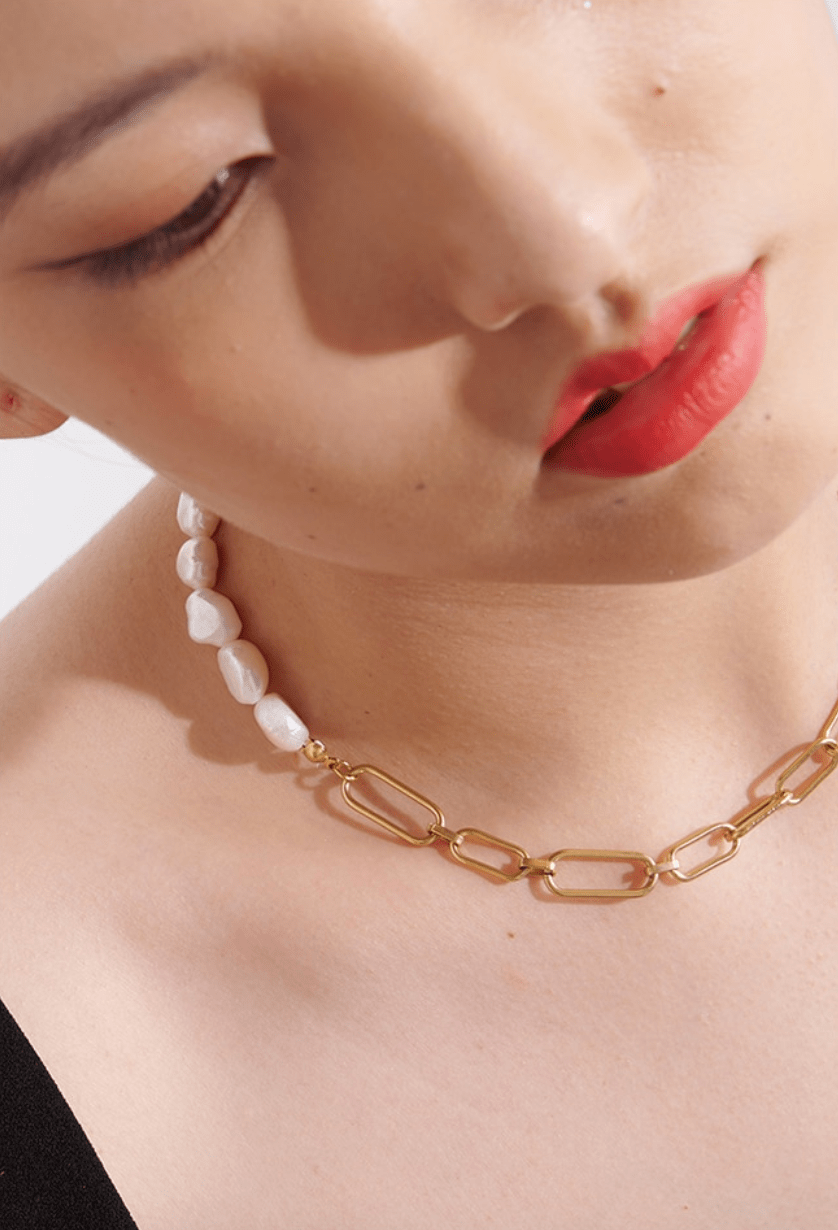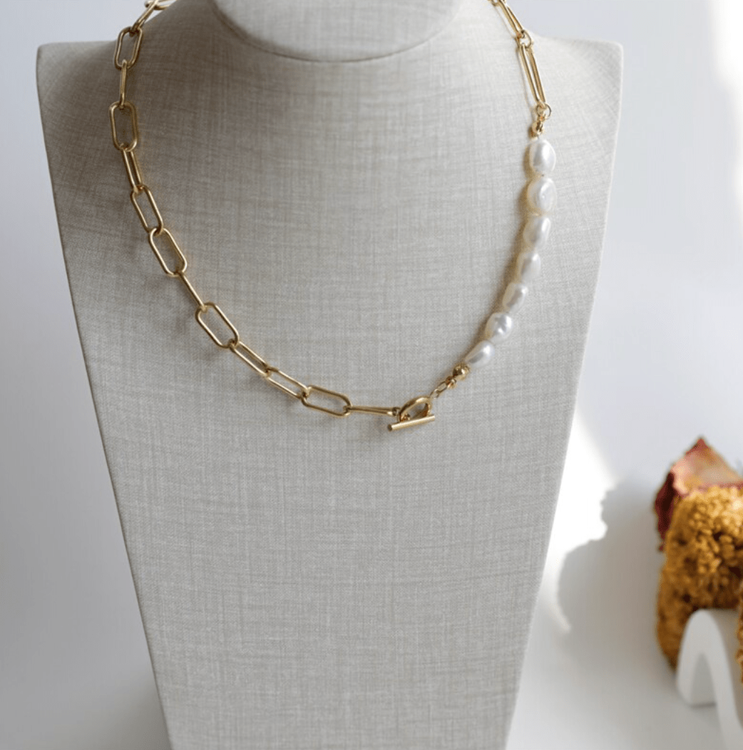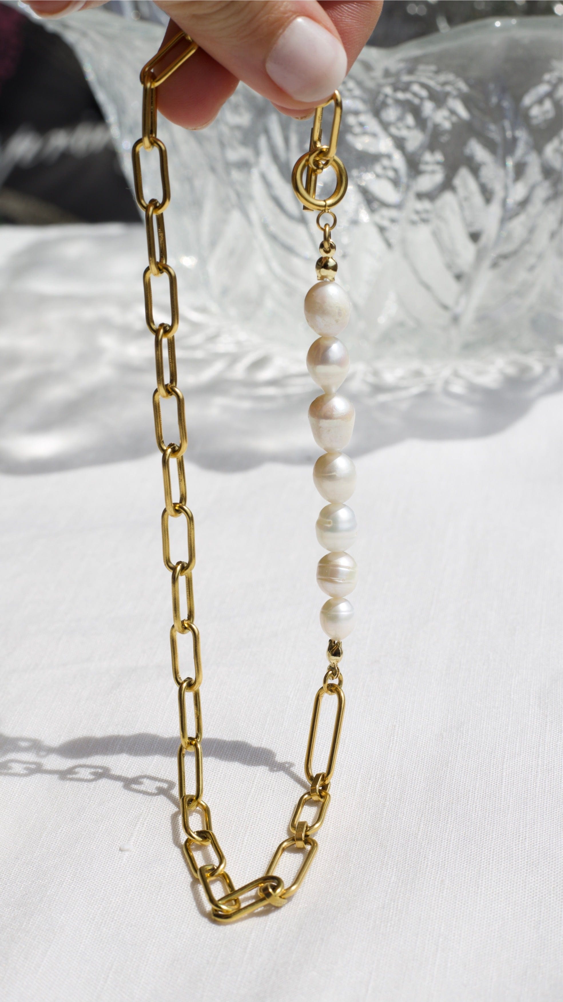 Beaux – Halskette mit halber Perle und halber Gliederkette