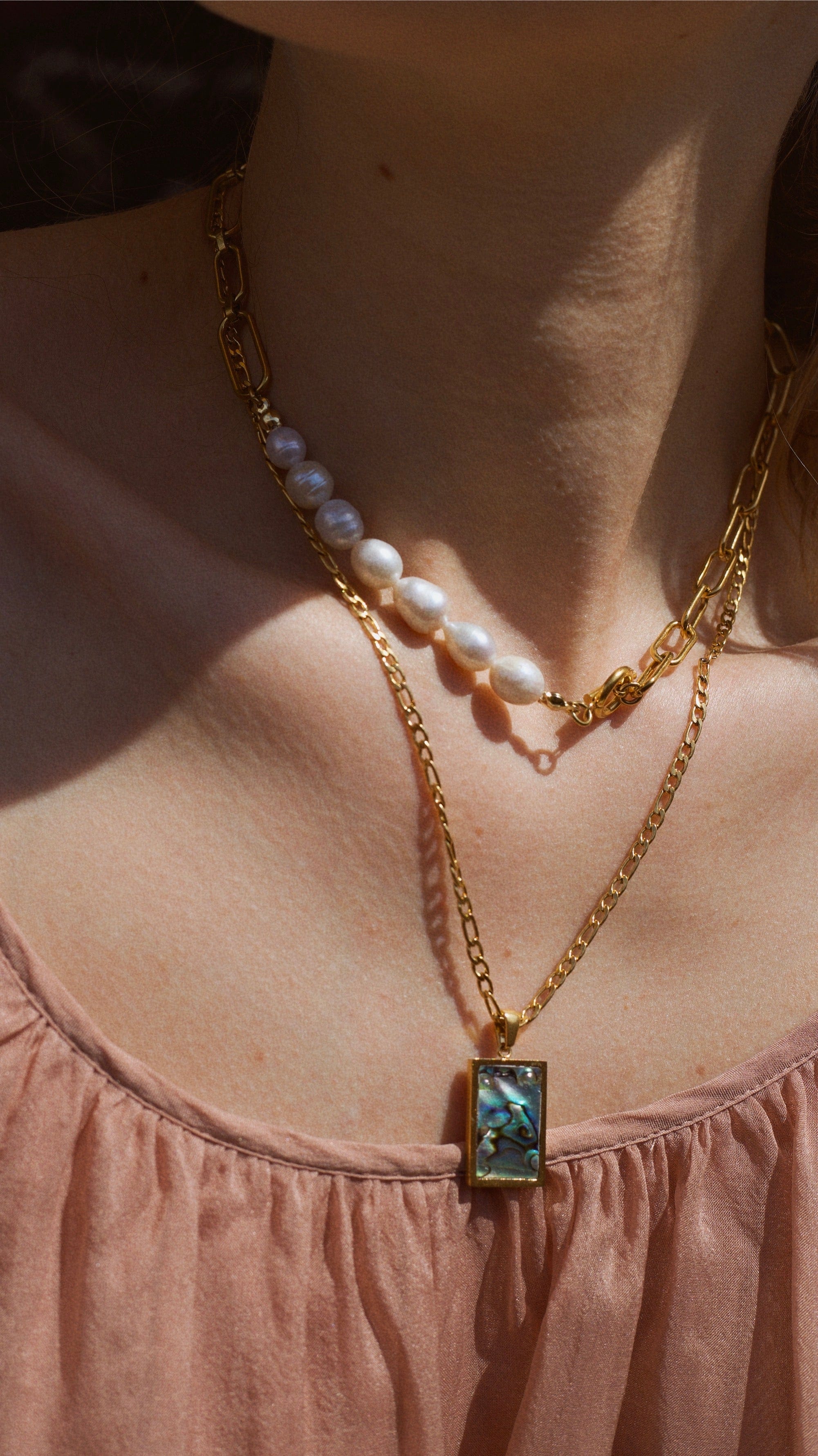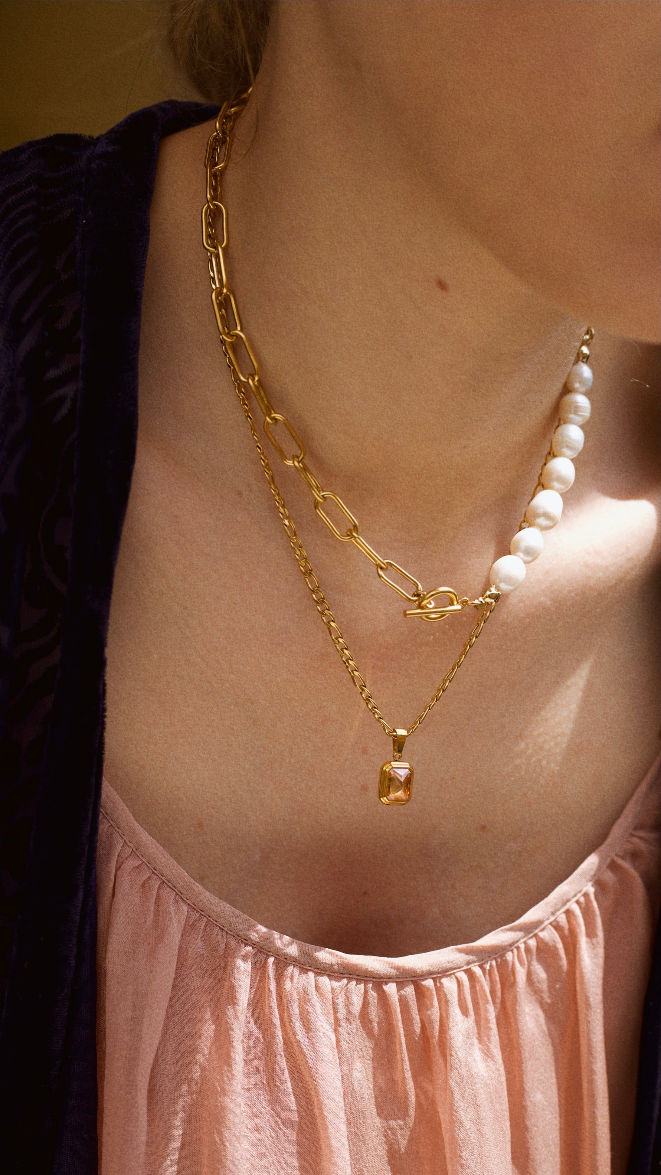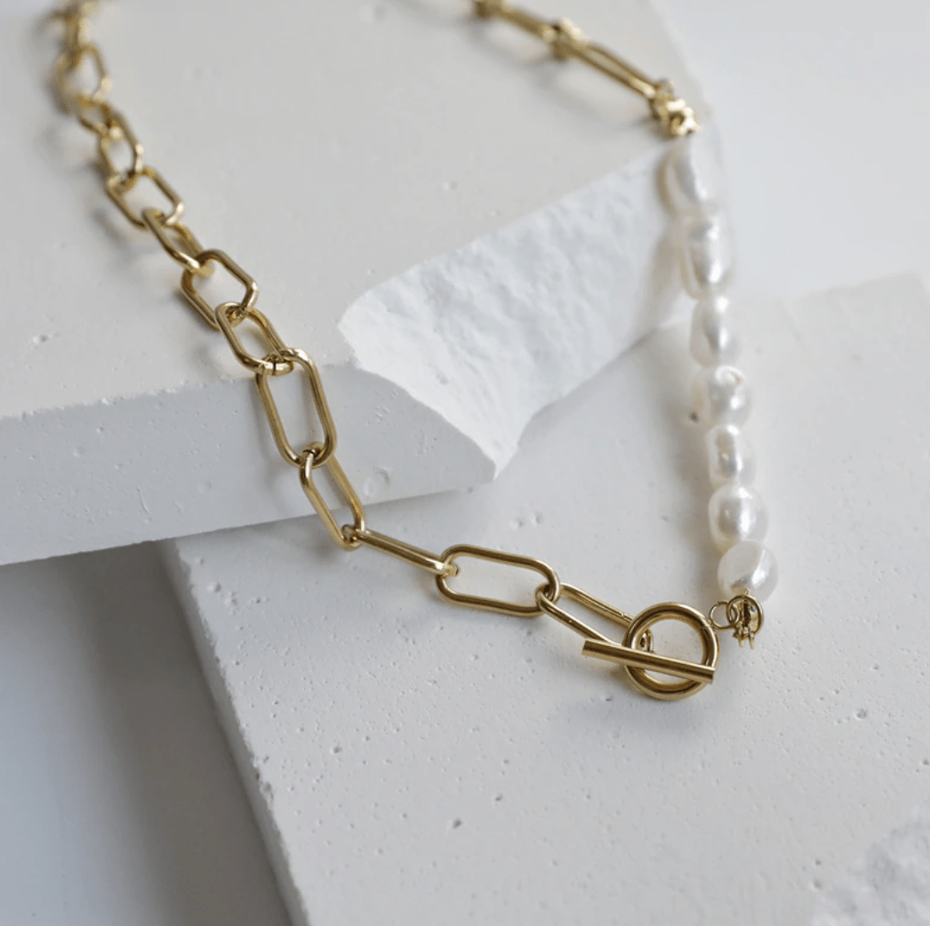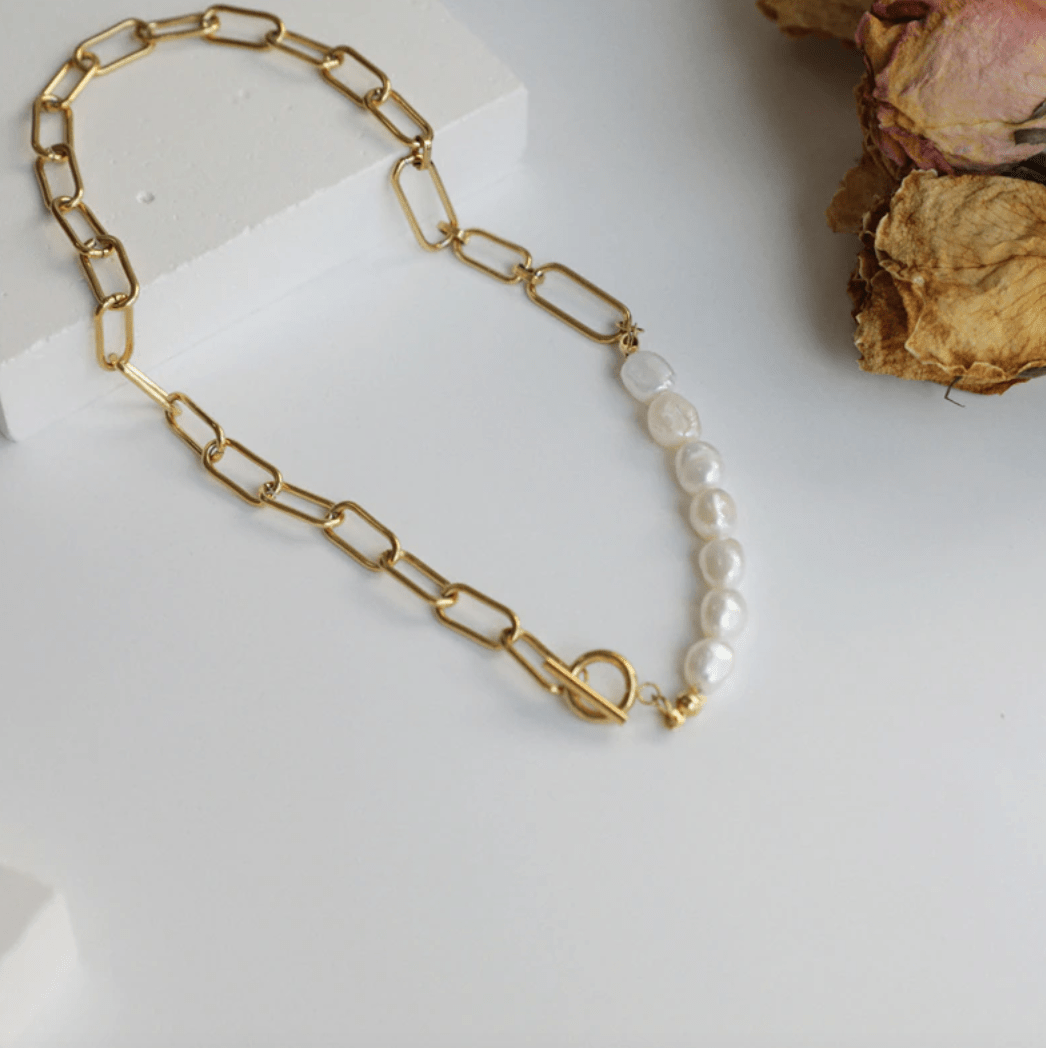 Beaux – Halskette mit halber Perle und halber Gliederkette