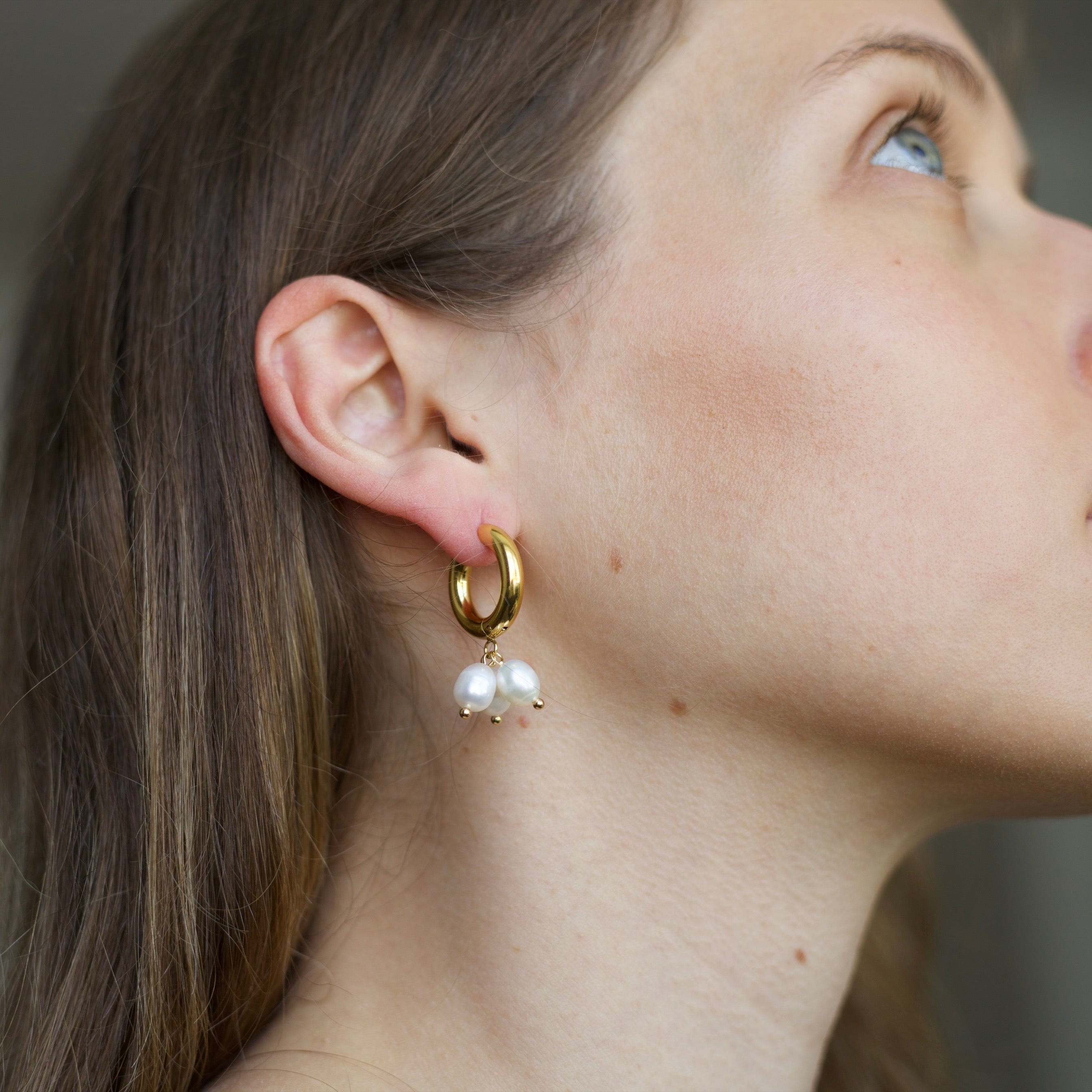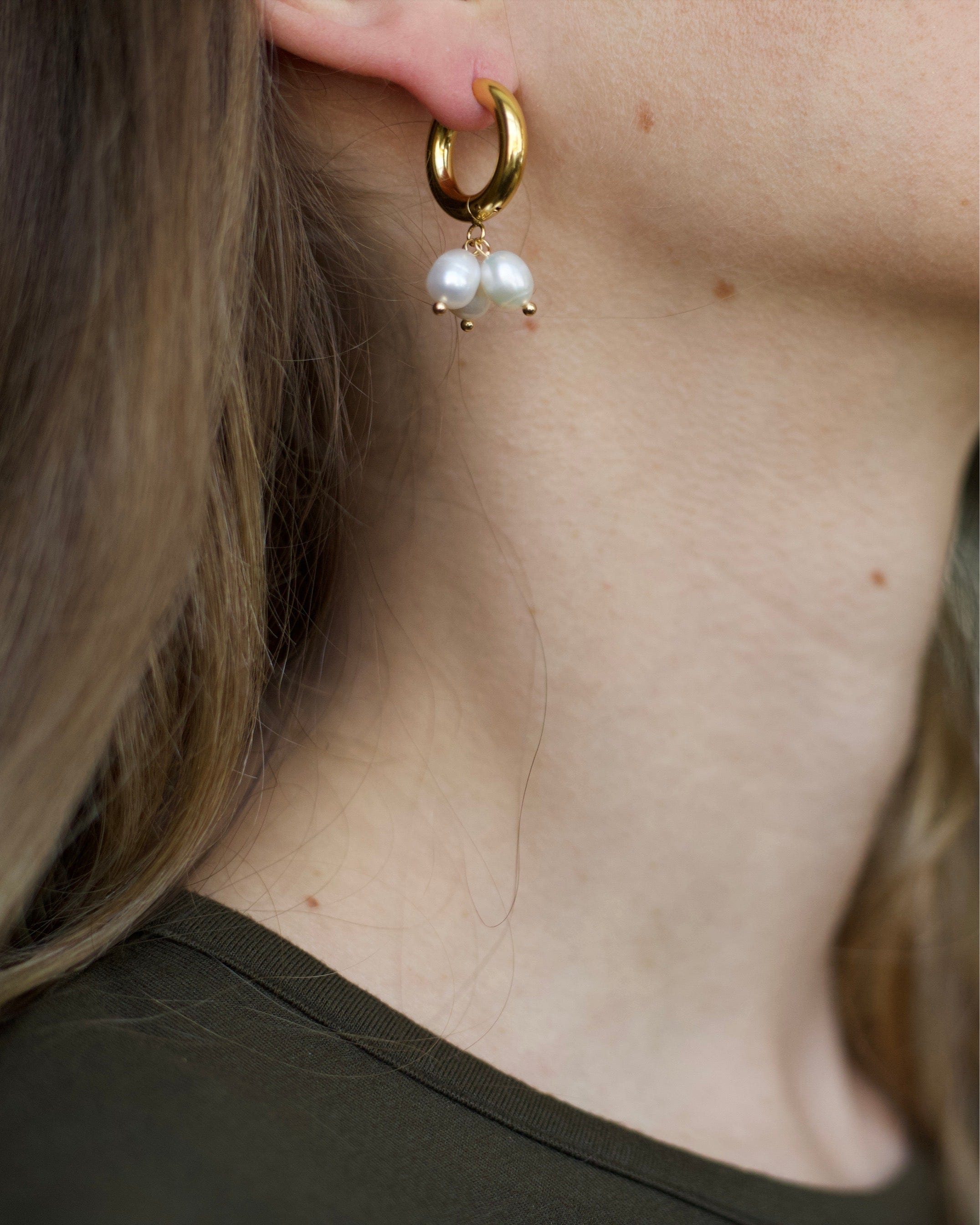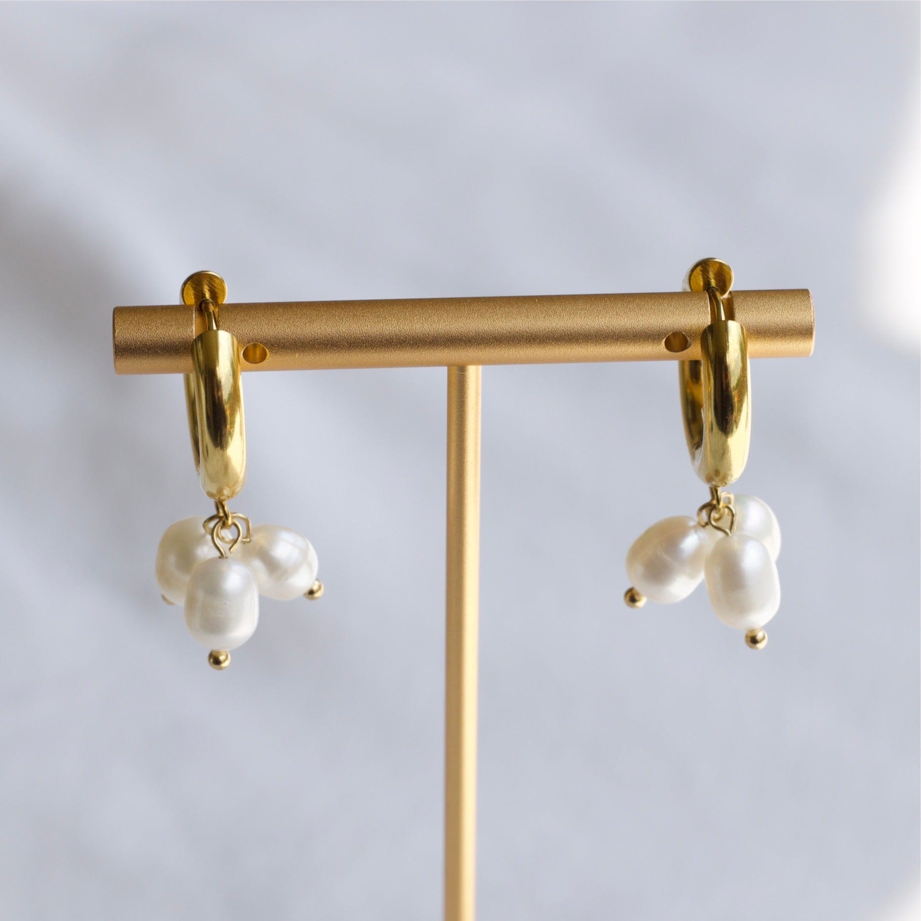 Blinn – Gold-Creolen mit Dreifach-Cluster-Perlen