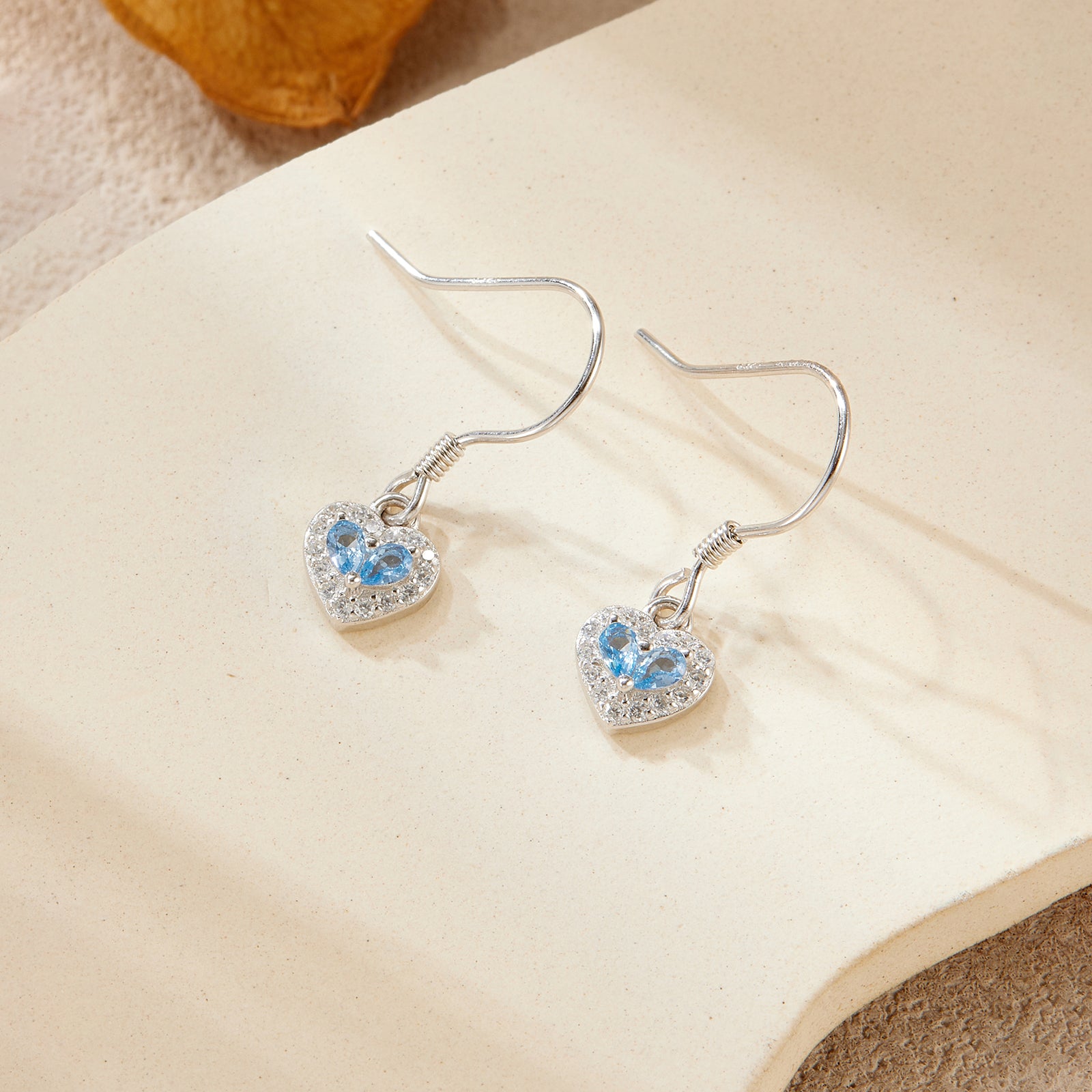 Diese zarten Ohrringe aus hypoallergenem 925er Sterlingsilber sind mit funkelnden, herzförmigen Zirkonia in strahlendem Blau verziert. Das Zusammenspiel von kühlem Silber und der intensiven Farbe des Steins verleiht ihnen einen eleganten und zugleich verspielten Look.