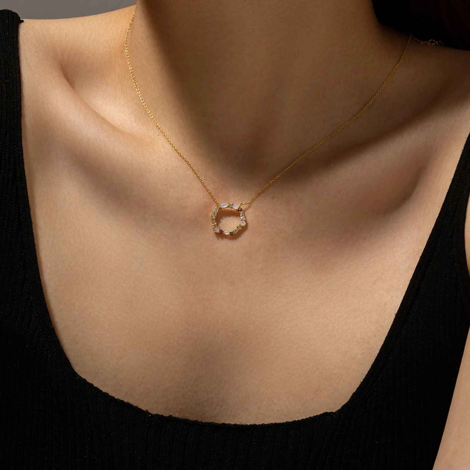 Bergen - Collier à breloque ouverte multi-pierres précieuses
