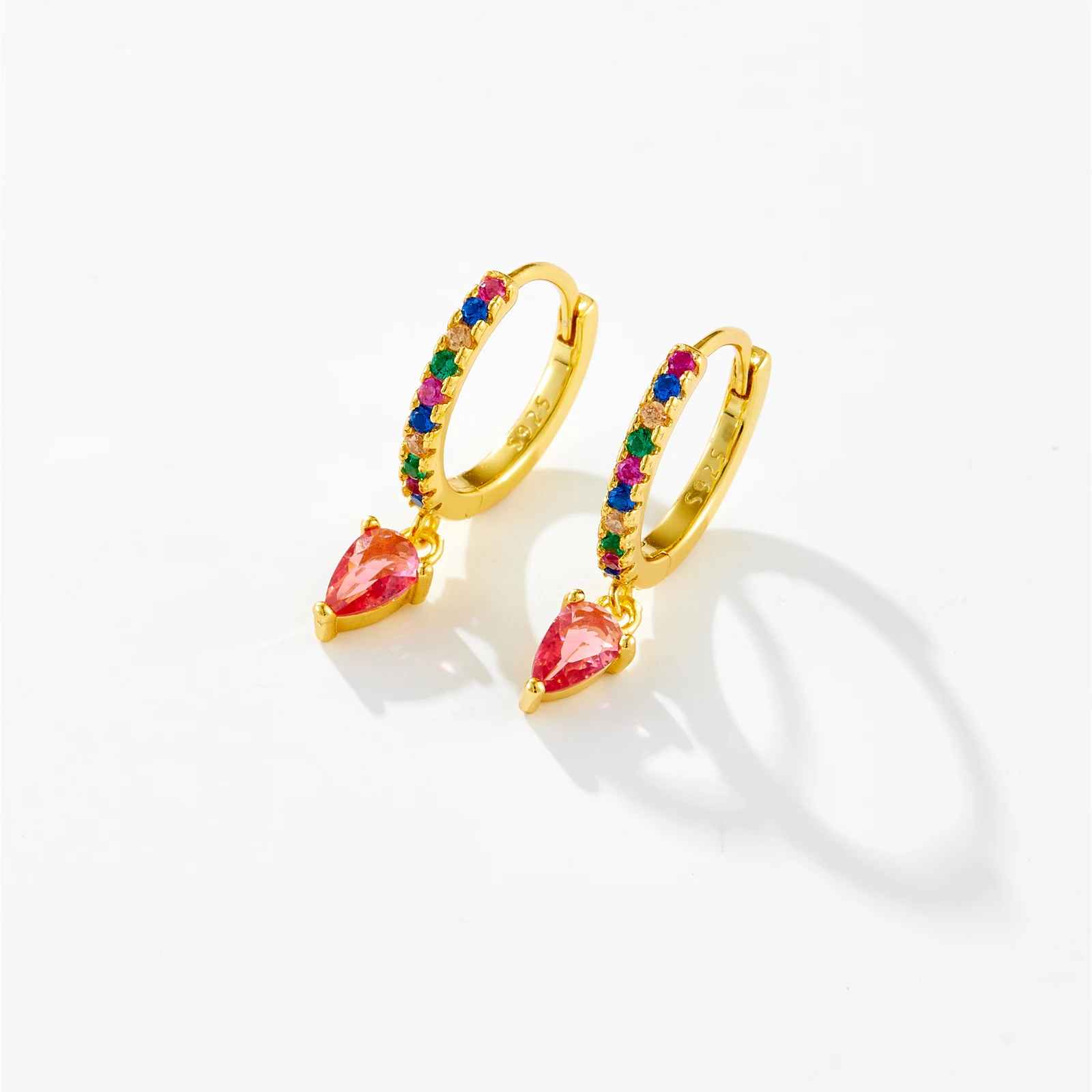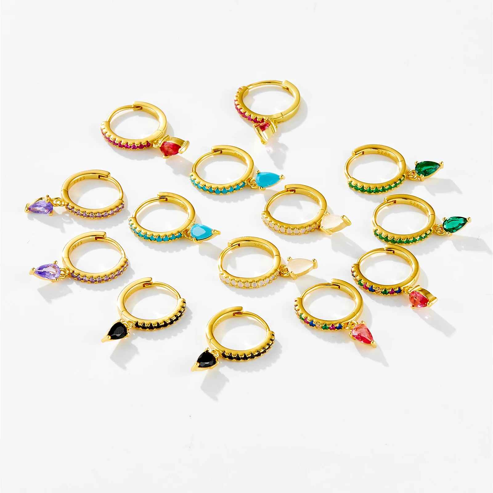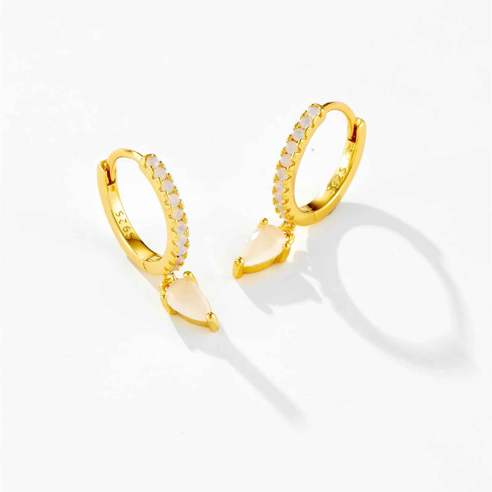 Bernice - Boucles d'oreilles créoles délicates en forme de larme pavées