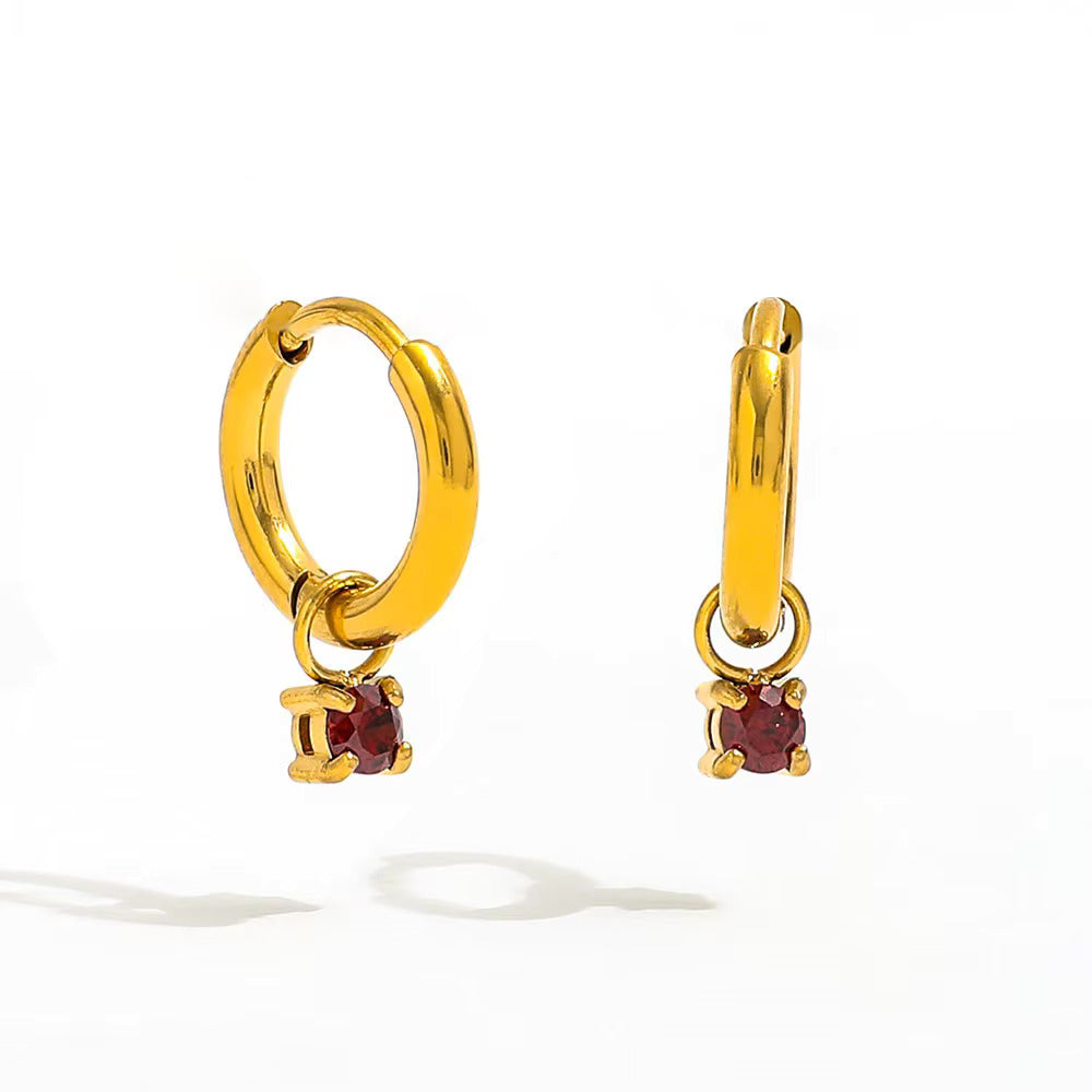 Jana - Boucles d'oreilles créoles dorées avec breloque en zircone
