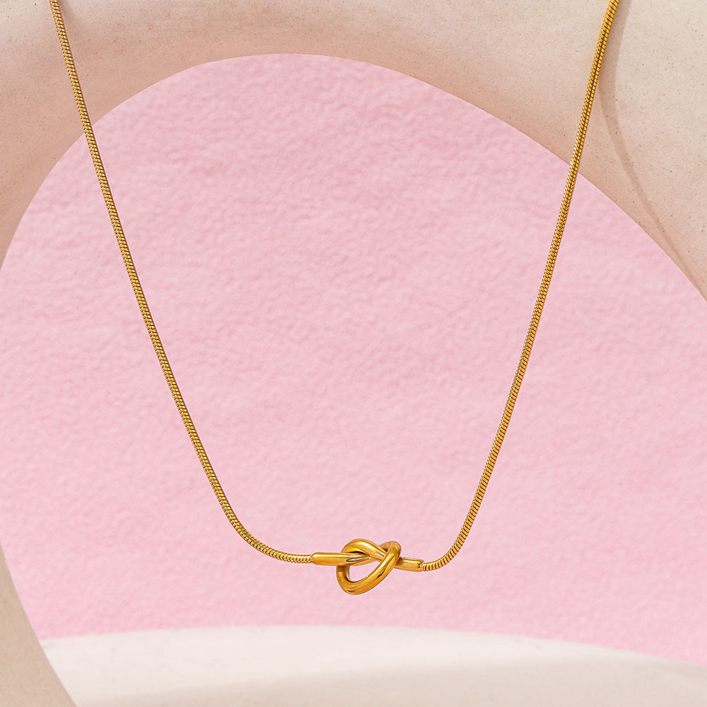 Naomi est un ensemble de bijoux intemporel composé d'un délicat collier et d'un bracelet assorti orné d'un nœud. Ce nœud symbolise le lien, la force et l'unité, faisant de ces pièces un accessoire précieux pour sublimer toute tenue.