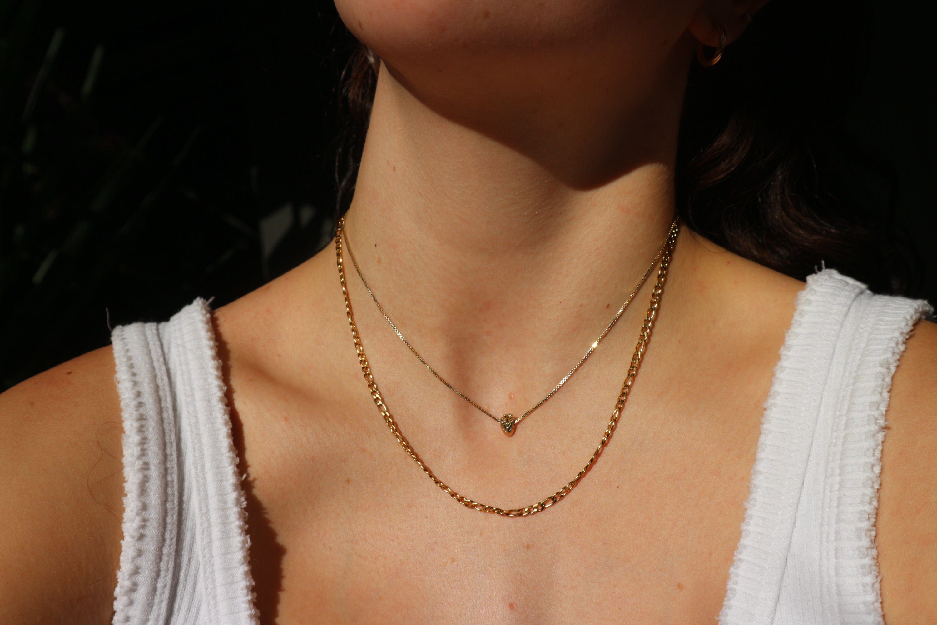 Ces délicats colliers à maillons fiagro brillent d'un or riche, offrant un look chic, raffiné et romantique. Un éclat doré subtil et délicat ! Plaqué or 18 carats sur acier inoxydable et orné d'un cristal clair taillé en diamant de haute qualité, ce bijou est inaltérable et conçu pour durer. Un style charmant à associer à d'autres colliers ou à porter seul. Idéal à offrir !