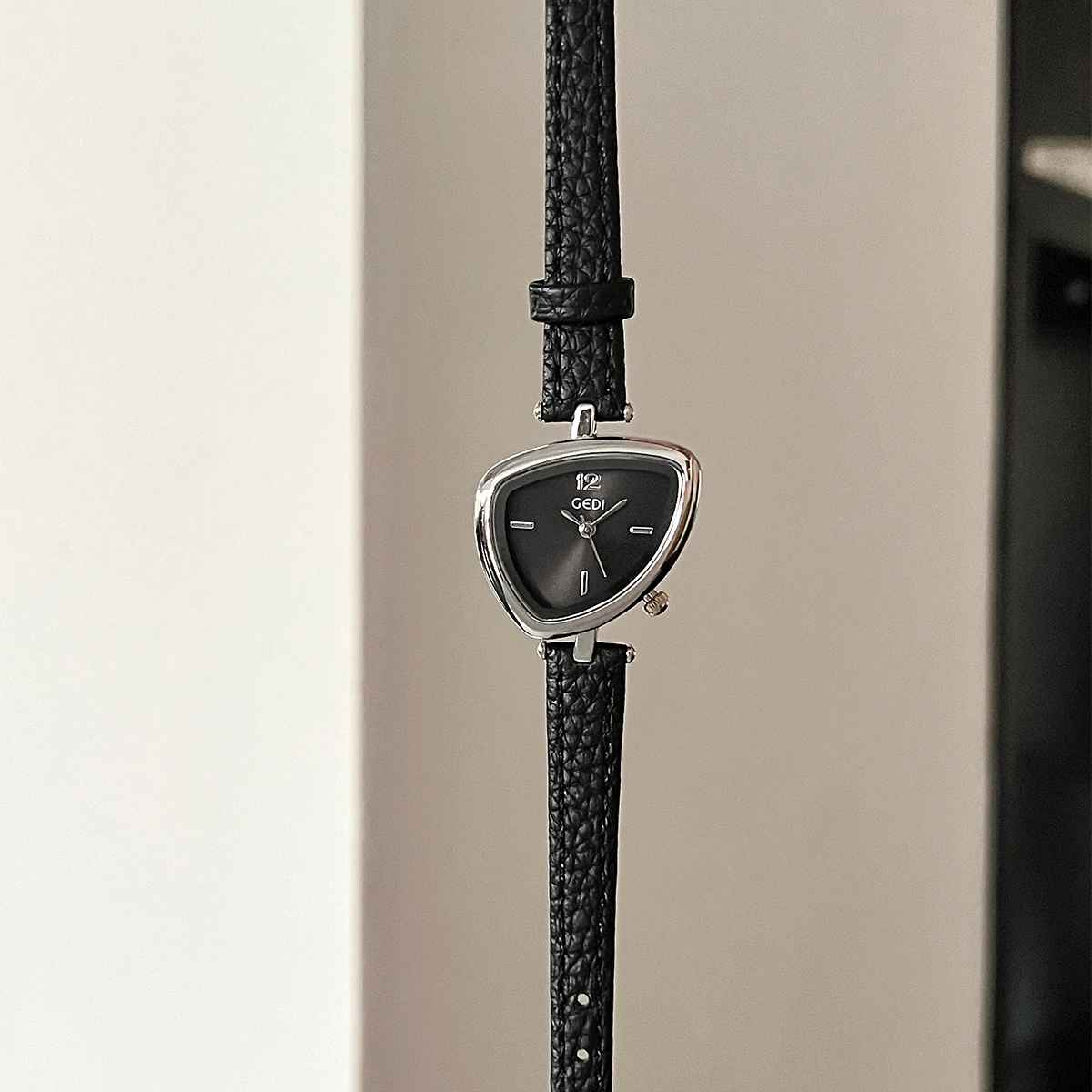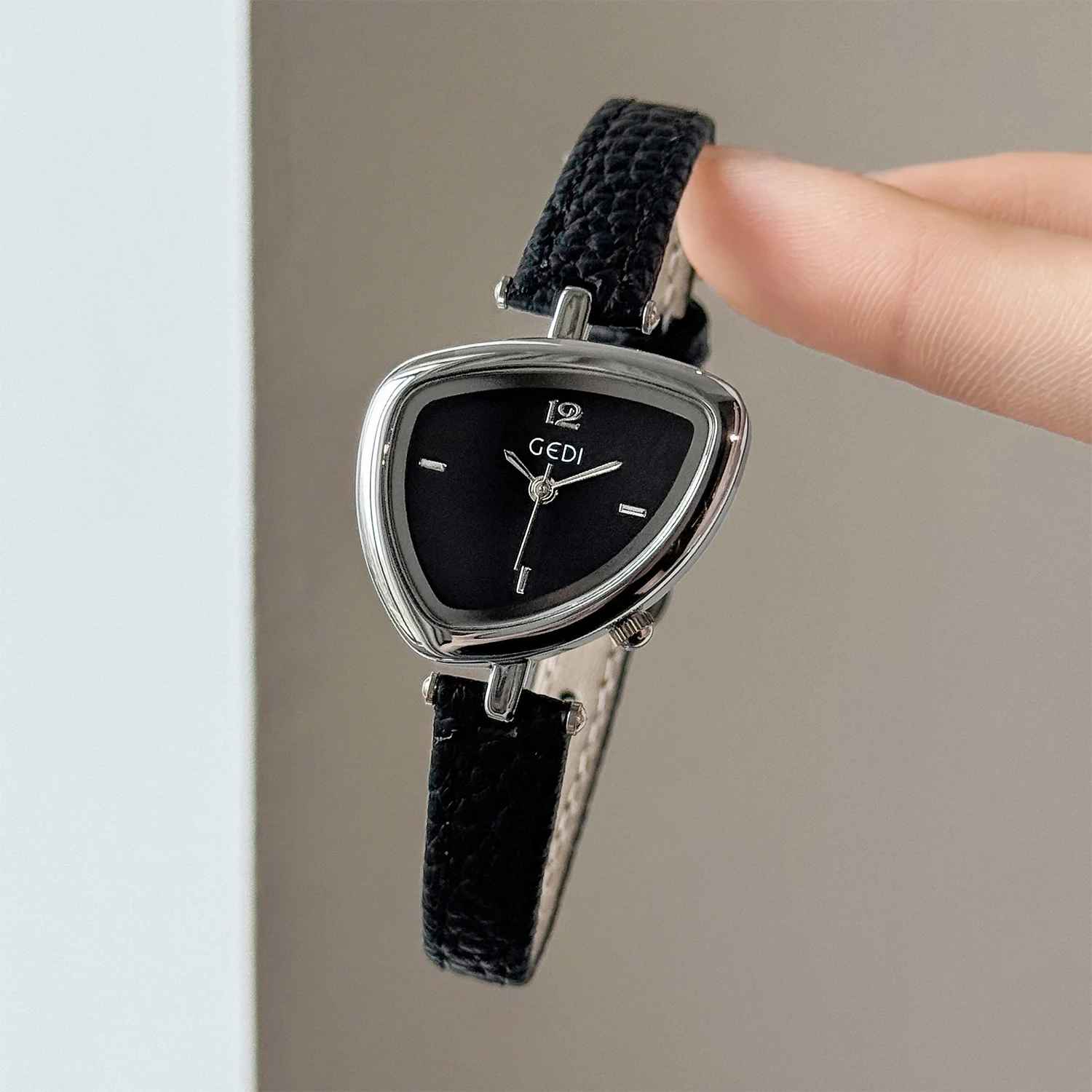 Merced - Montre à bracelet en cuir asymétrique dotée d'un cadran triangulaire saisissant et d'un élégant bracelet en cuir. Ce garde-temps allie un design architectural audacieux à un savoir-faire raffiné, mis en valeur par ses index minimalistes et son design géométrique.