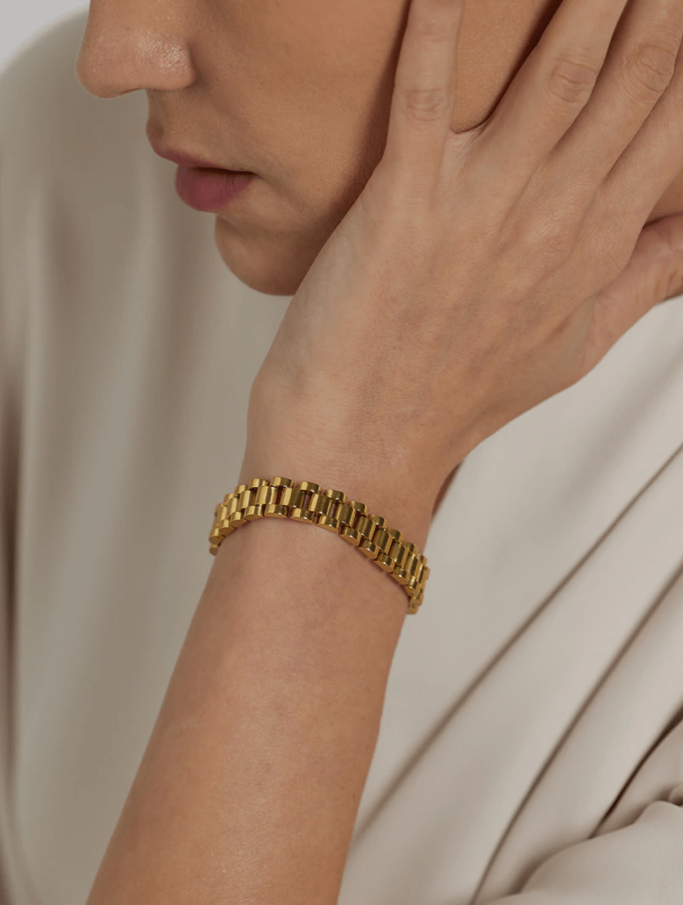 Gold Flat Chain Chunky Bracelet