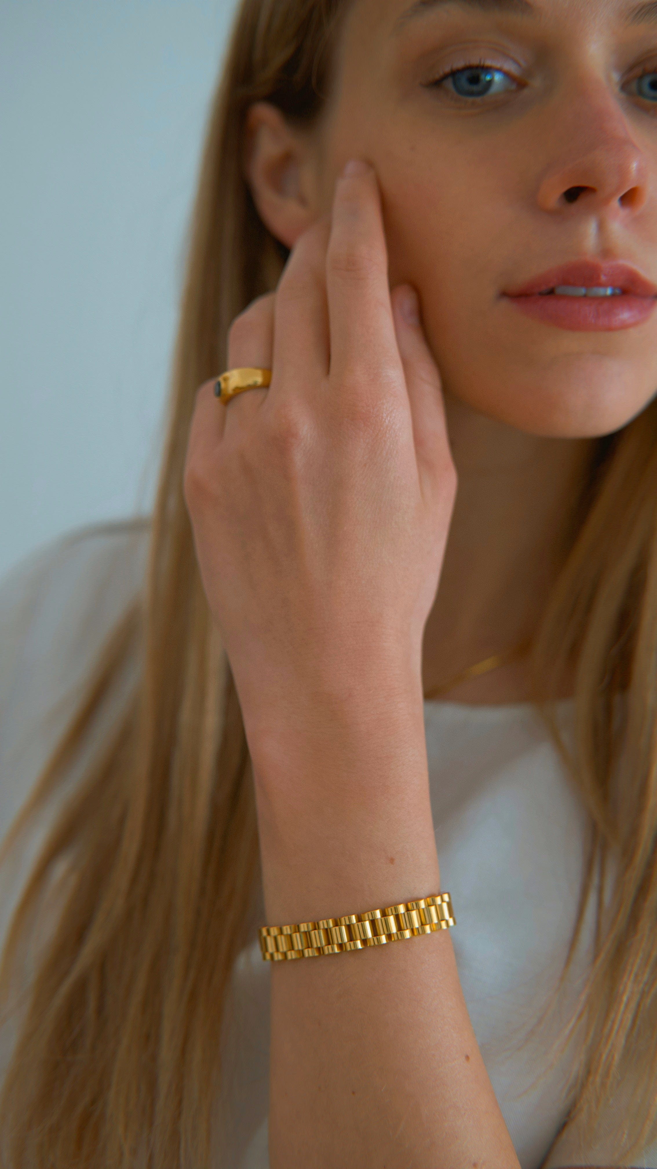 Perfect simple modern jewelry. Thick chunky design goes well with retro vintage style to model simple minimal outfits.
