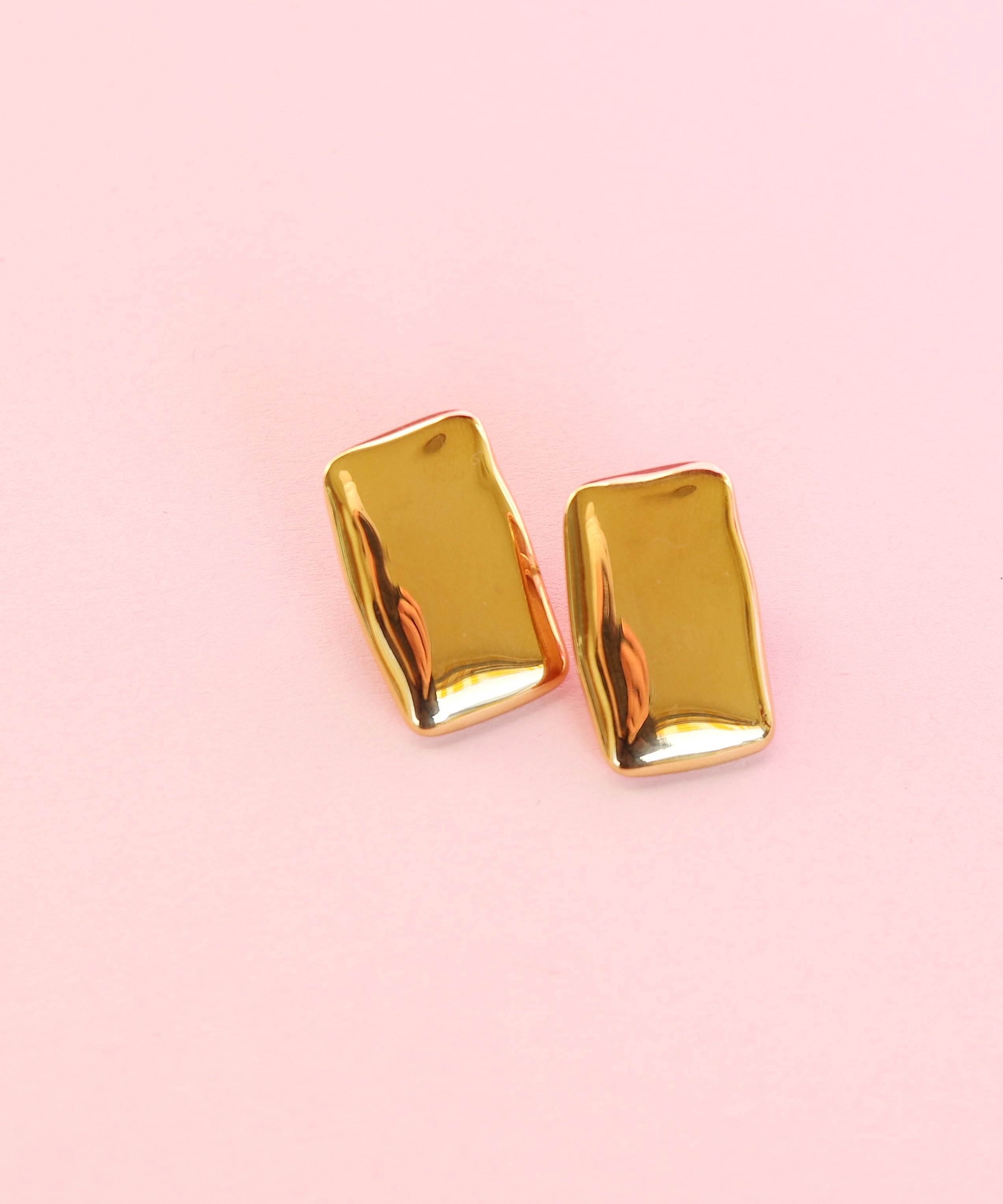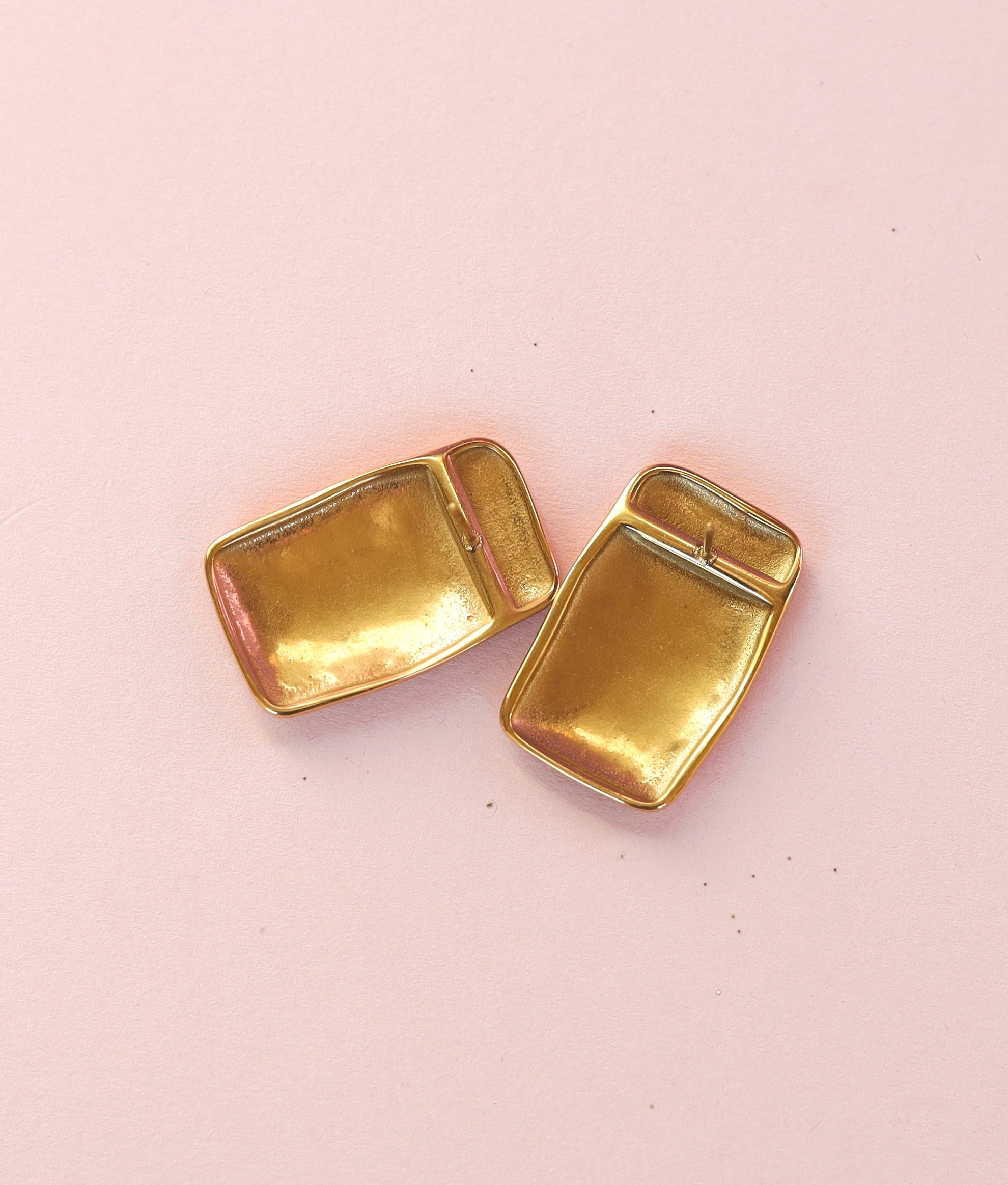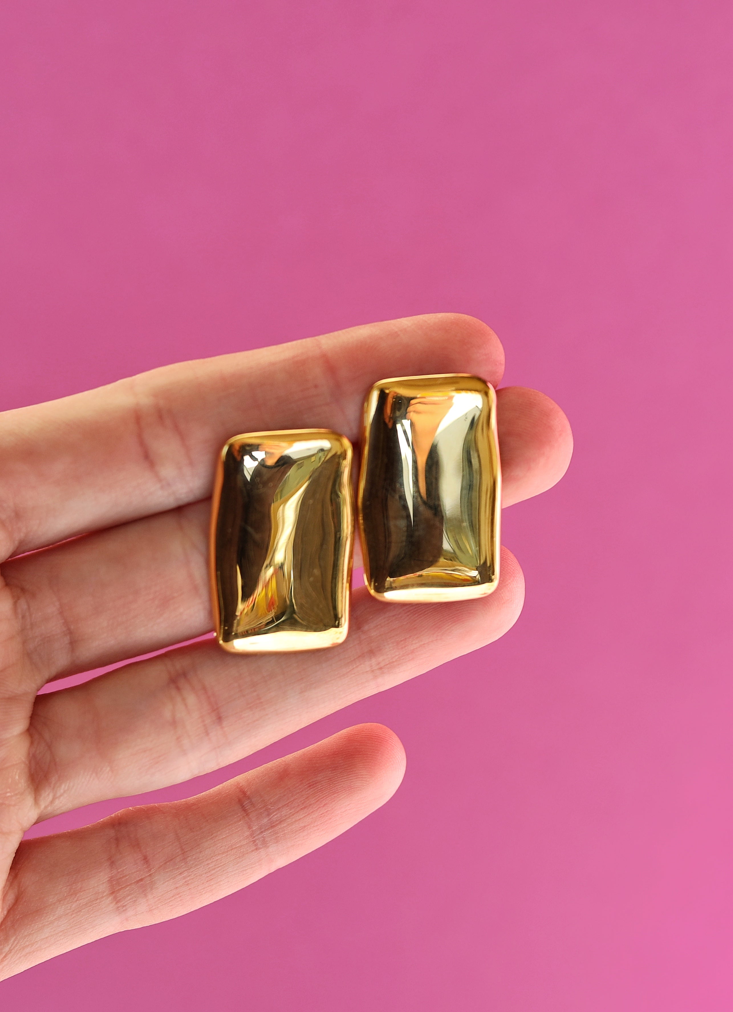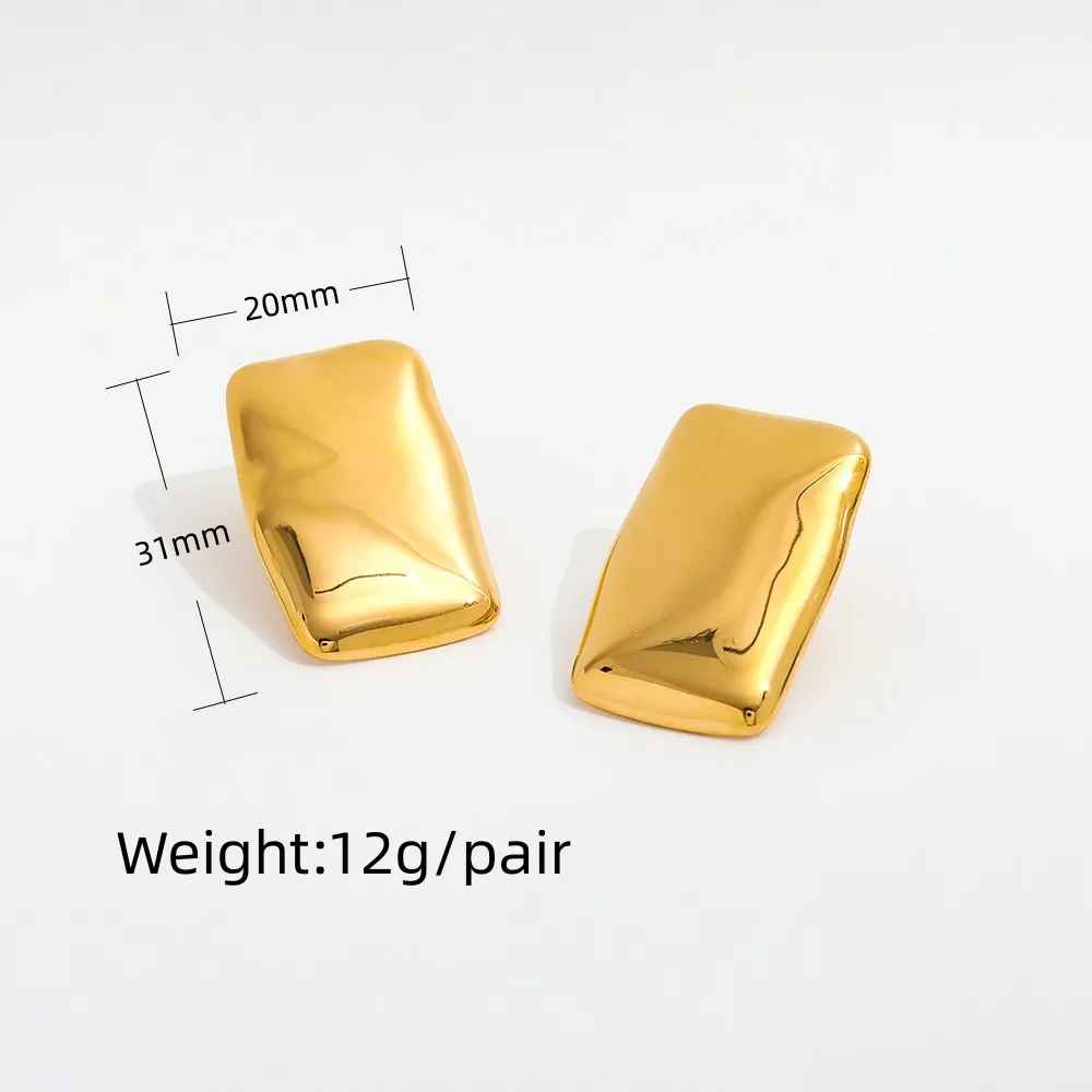 These perfectly large square gold earrings are bold and reminiscent of the 80’s and 90’s! These stainless steel earrings are waterproof made with 18K gold PVD coating so they won’t tarnish.