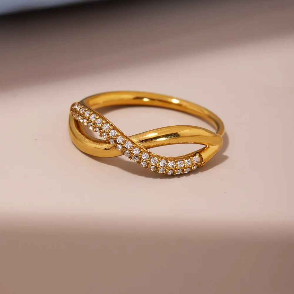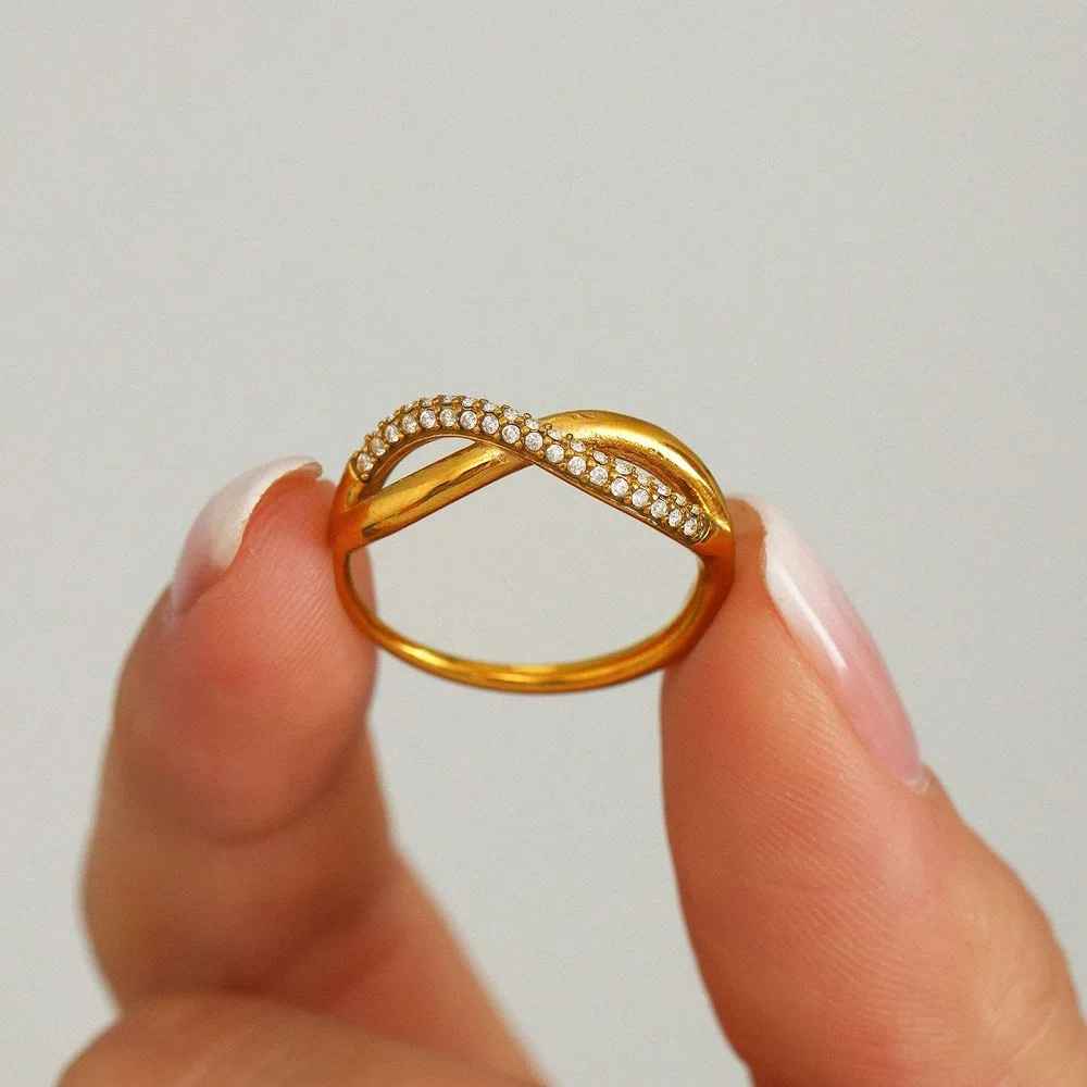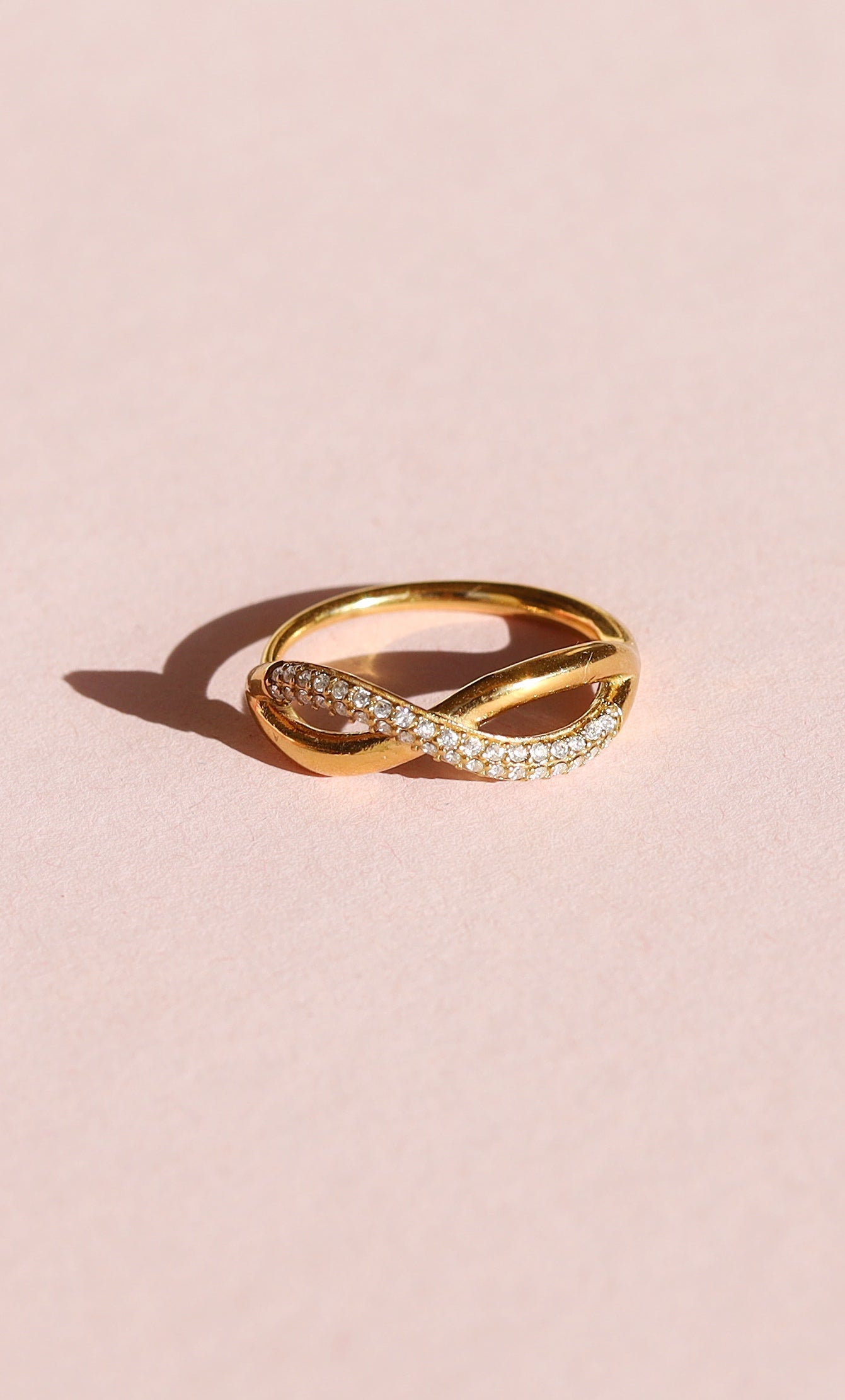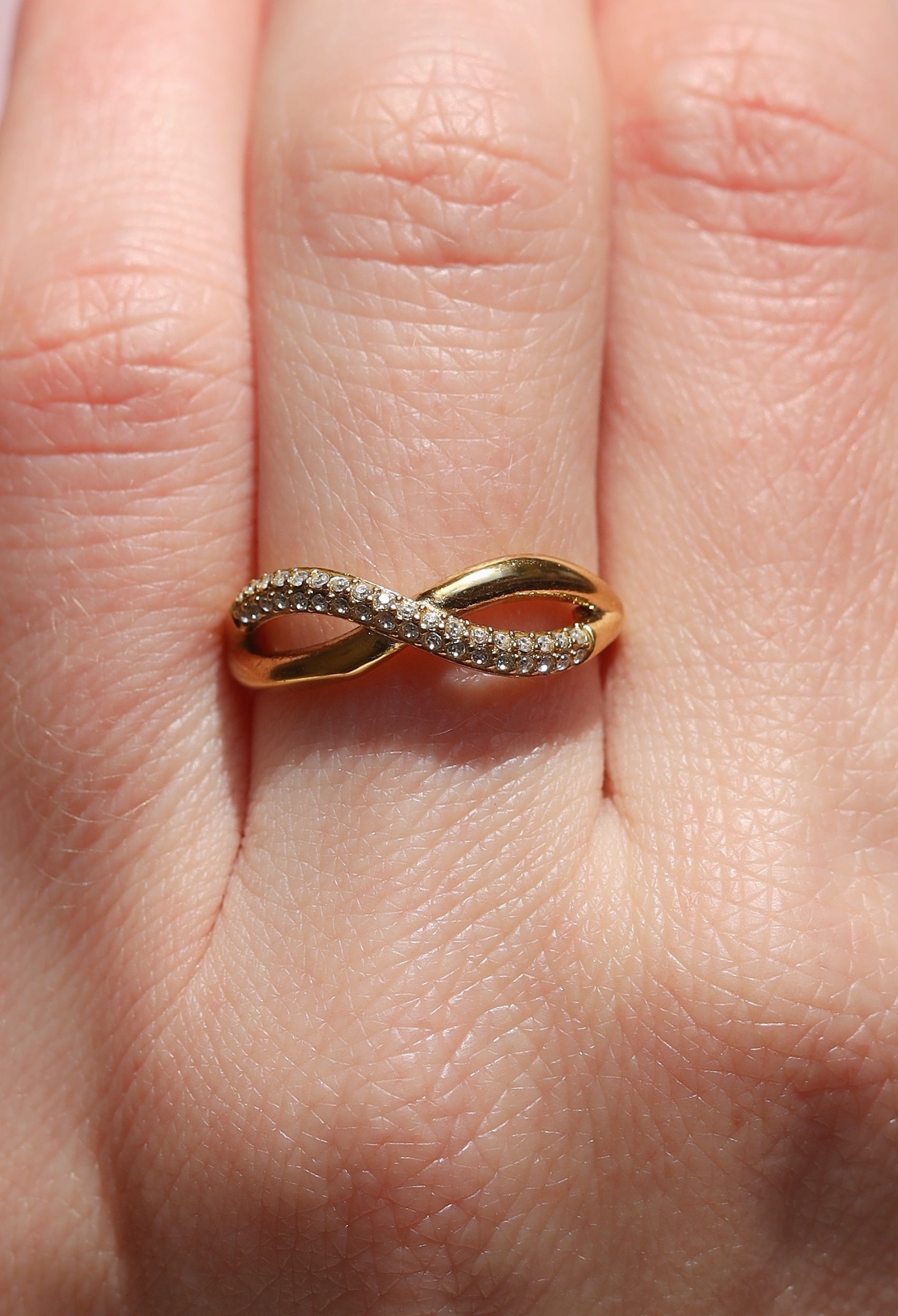 The perfect ring that will make a statement. Featuring a double layer cross over with a half crystal pavé finish.