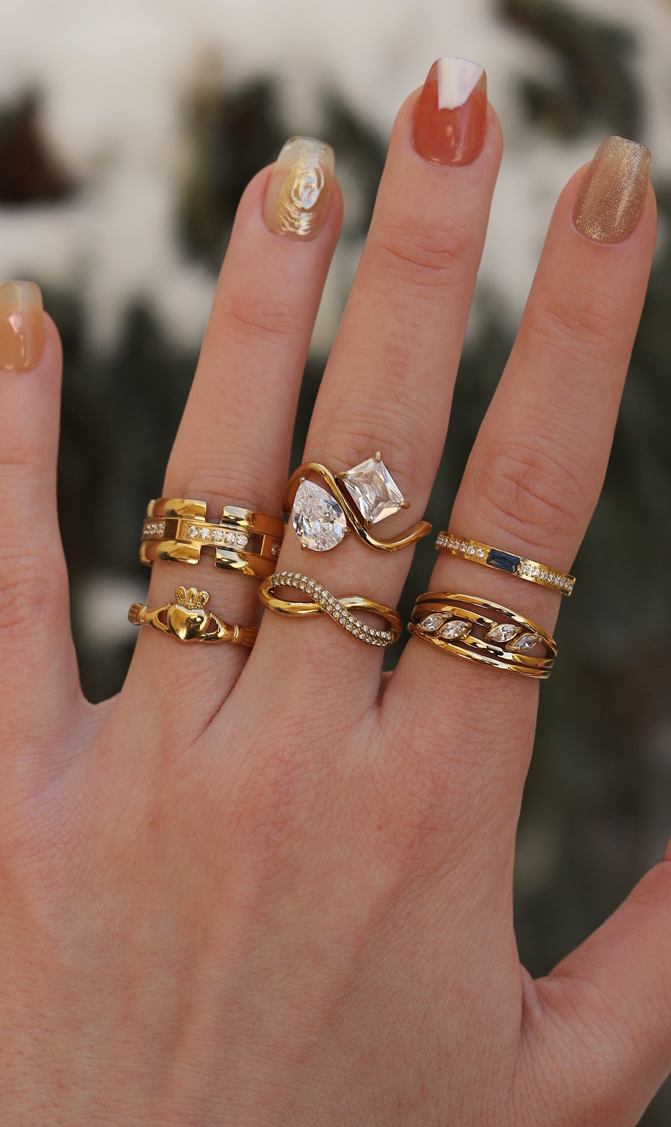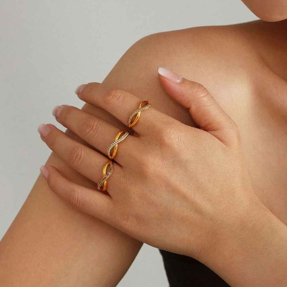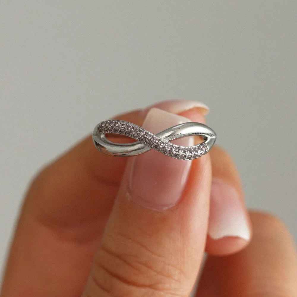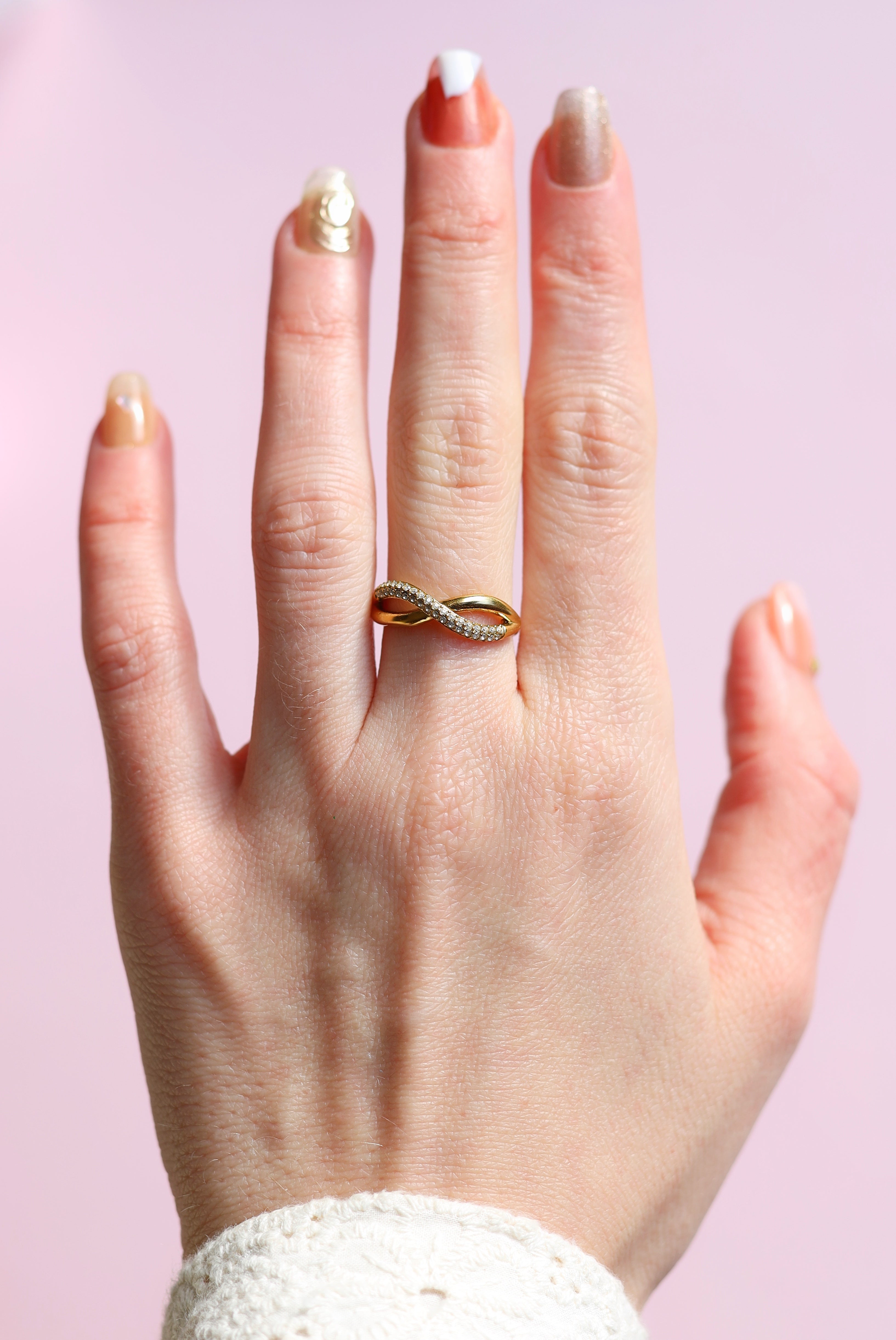 The perfect ring that will make a statement. Featuring a double layer cross over with a half crystal pavé finish.