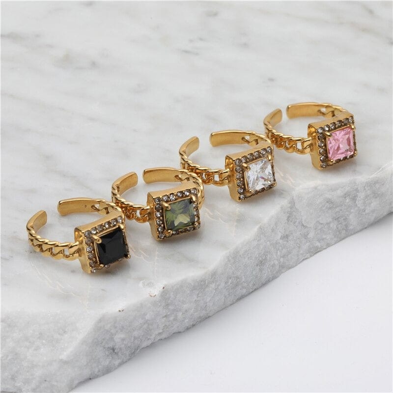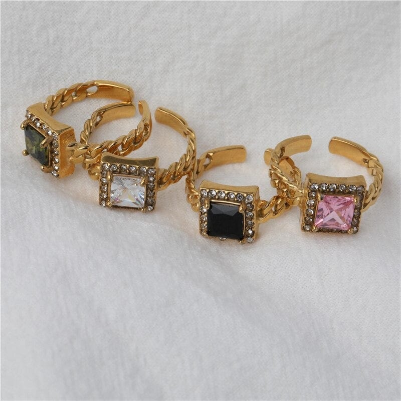 This braided sparkling crystal rings are open and adjustable, they are a beautiful statement piece that is perfect to wear everyday or in any special occasion. Perfect for stacking and made by high quality 18k gold plating over non fading stainless steel. Perfect as wedding or anniversary gift!